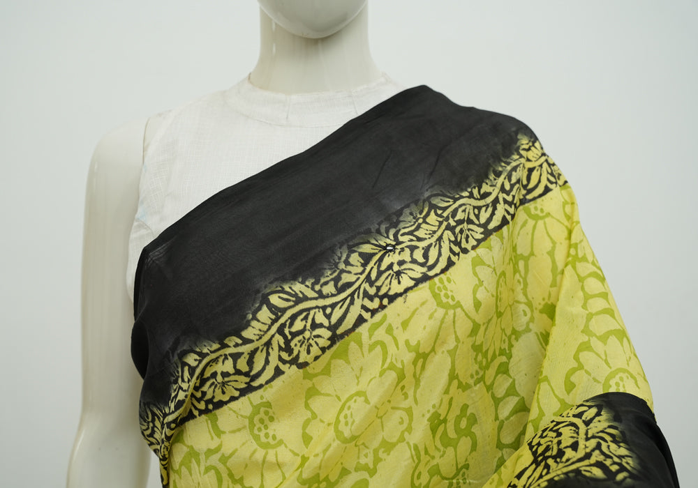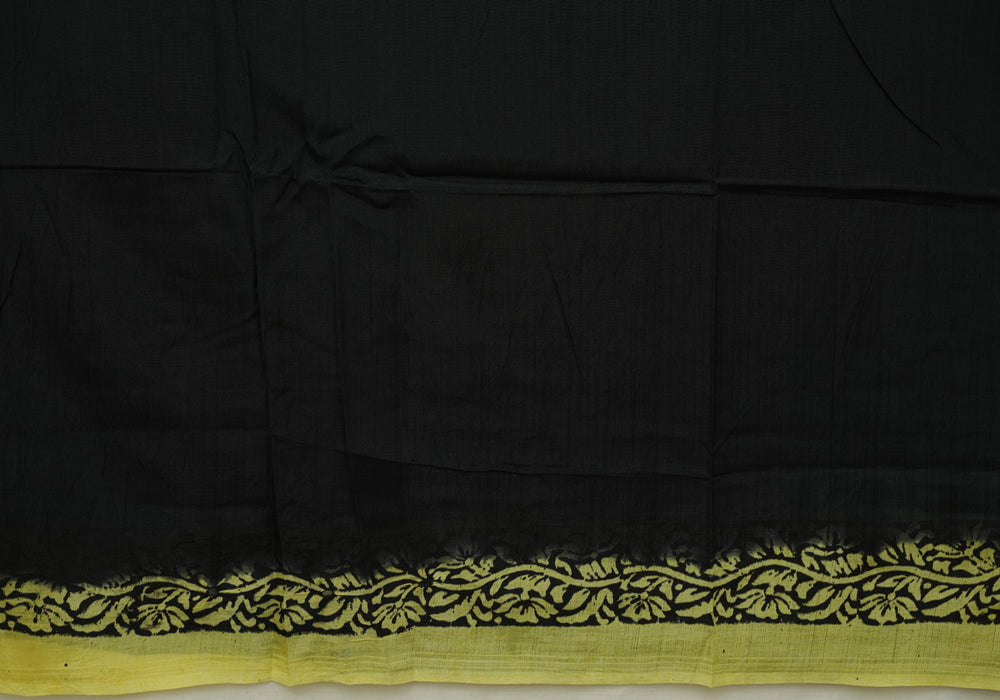 Lemon Yellow and Black Block Printed Chennur Silk Saree with Mirror Work is OUT OF STOCK currently and available on pre-payment only. Order now for delivery within 2 weeks.
