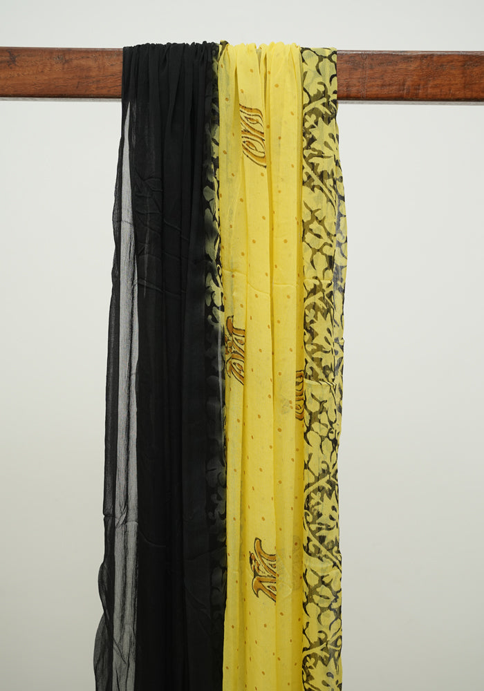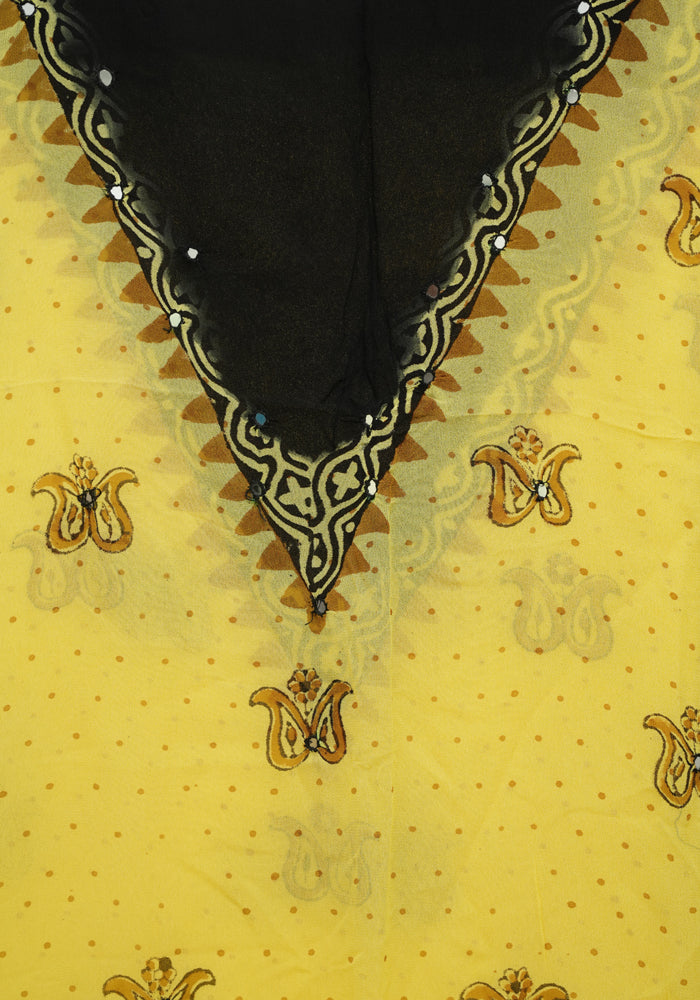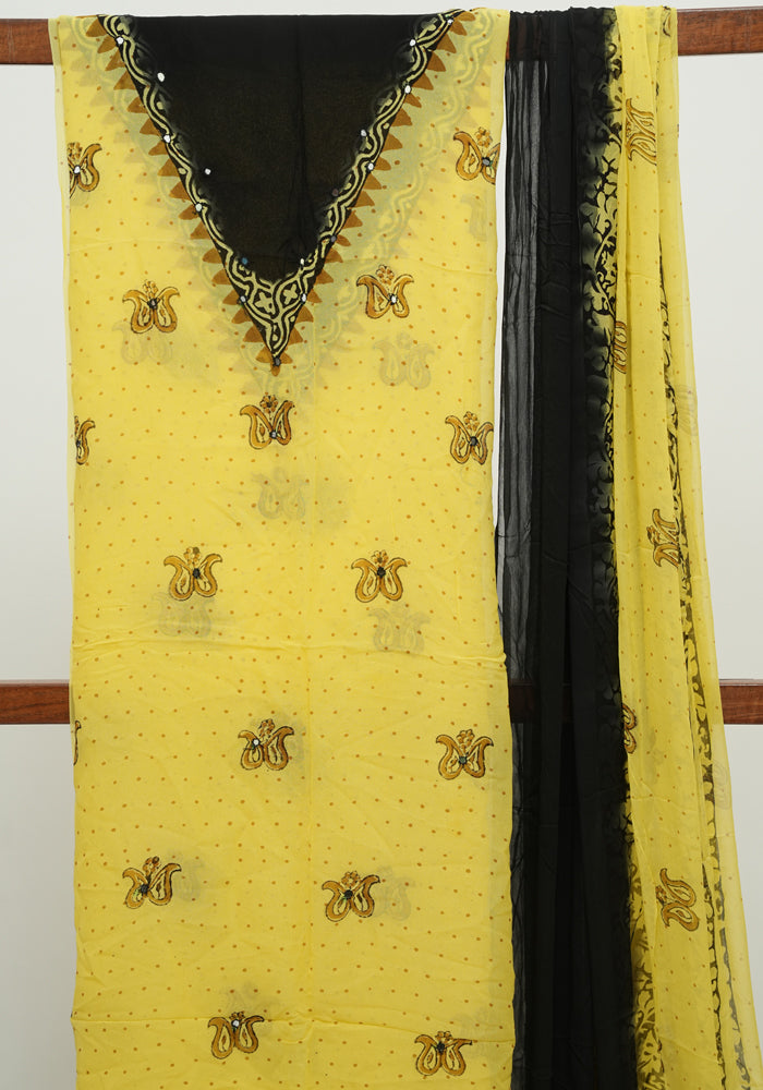 Lemon Yellow and Black Unstitched Georgette Salwar Set with Mirror Work