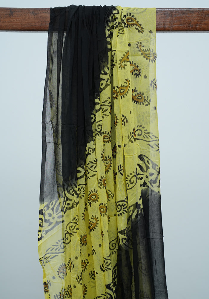 Lemon Yellow and Black Unstitched Georgette Salwar Set with Mirror Work