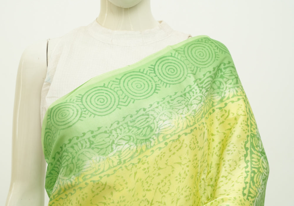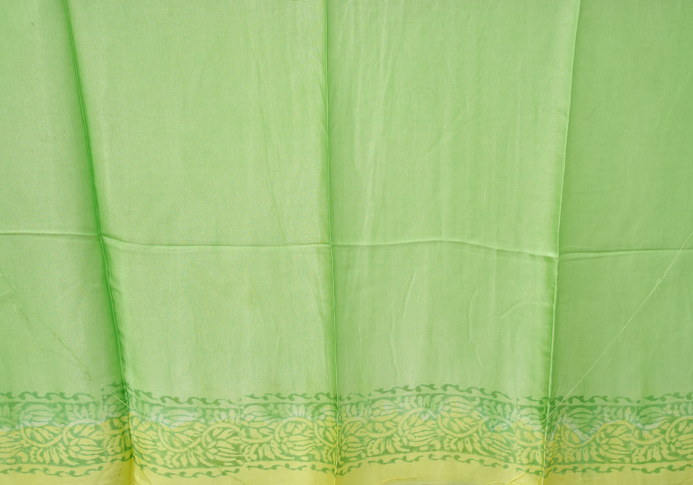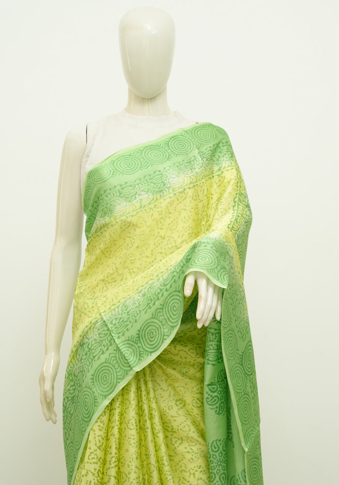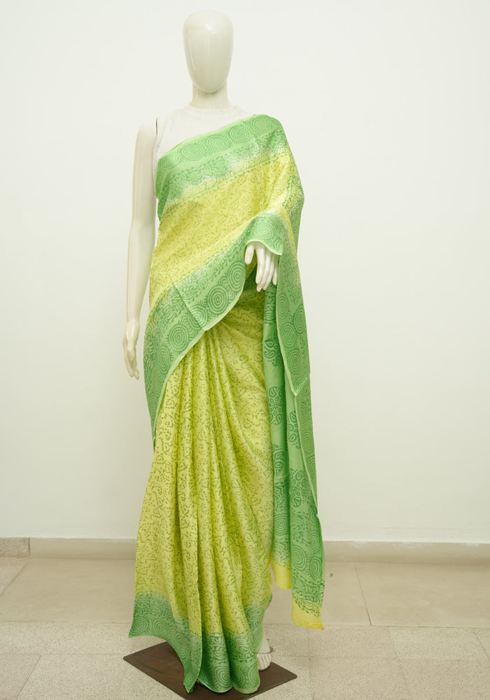 Lemon Yellow and Parrot green Block Printed Modal Silk saree