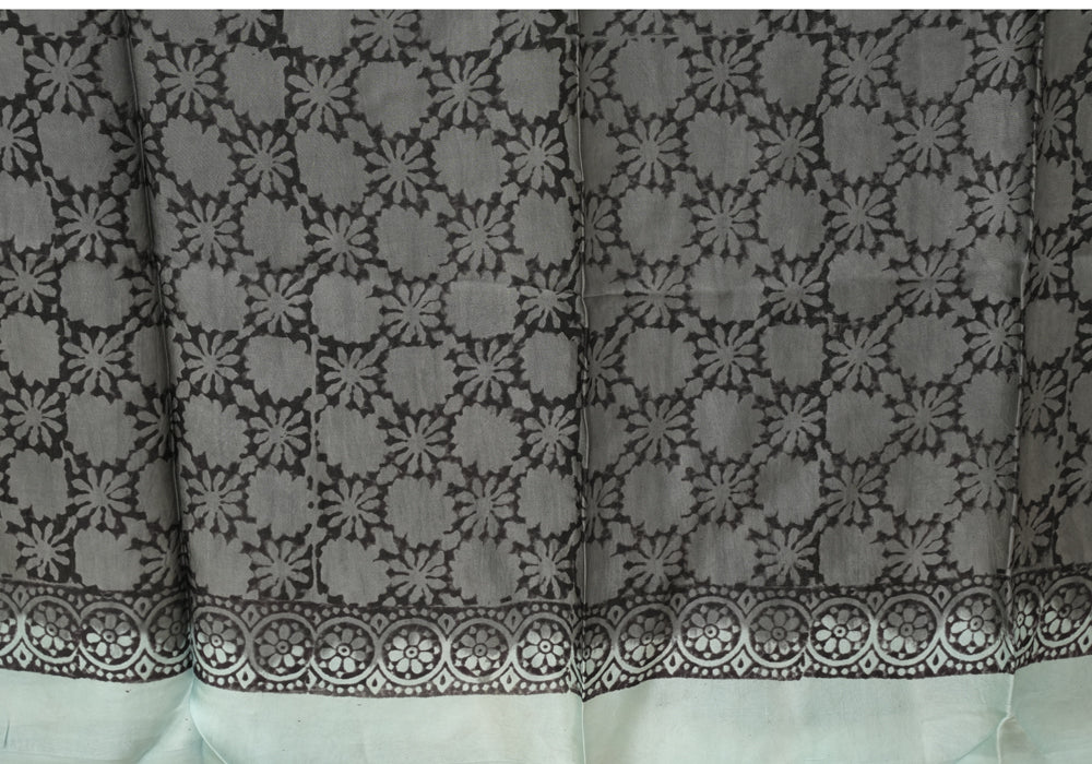 Discover the timeless elegance of hand block printed Modal Silk sarees. Made with the finest modal silk, this saree redefines elegance. The saree is soft , flowy and drapes like a dream.