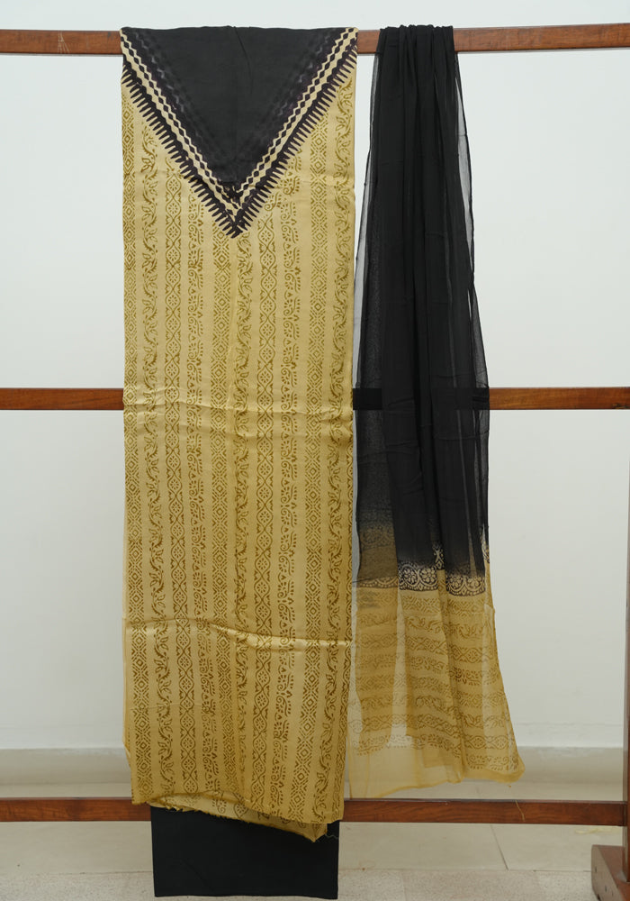 Desically Ethnic brings to you our newest offering, Unstitched Block Printed Modal silk Salwar Sets.All our designs are one of kind and they come as a 3 pc set - Top, Bottom and Dupatta.