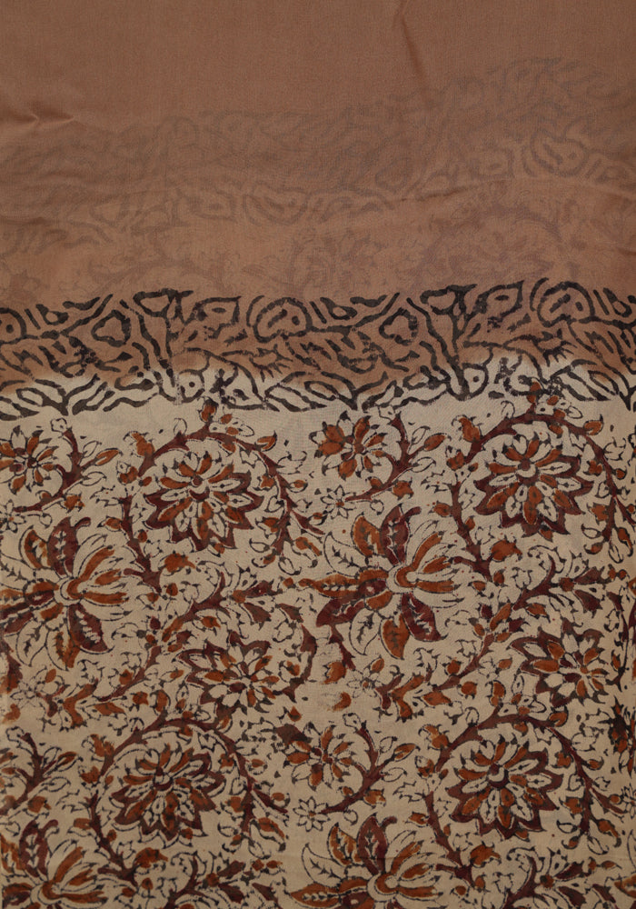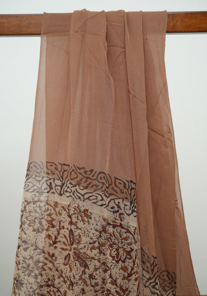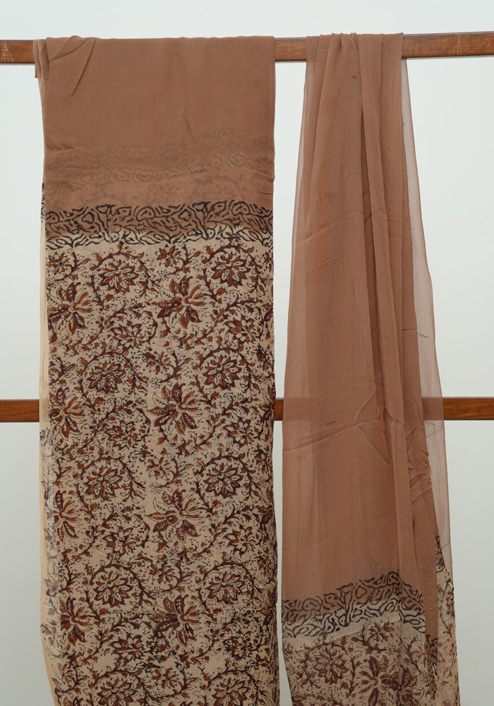 Light Brown and Brown Unstitched Blockprinted Georgette Salwar Set