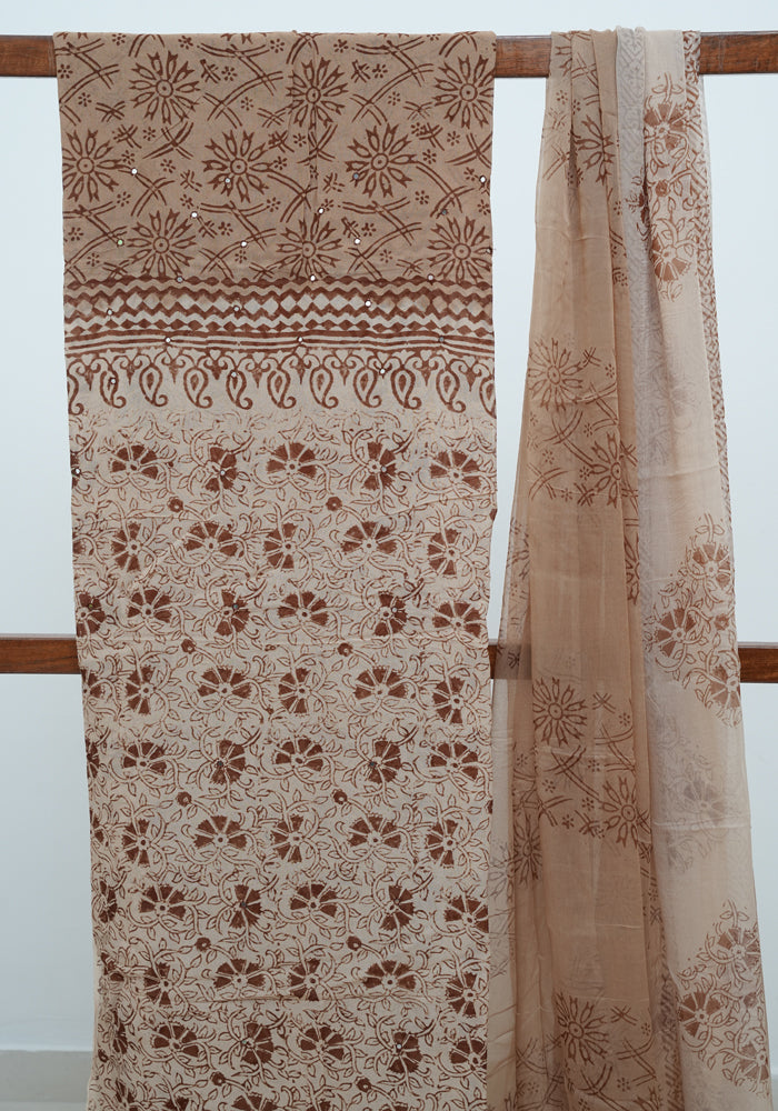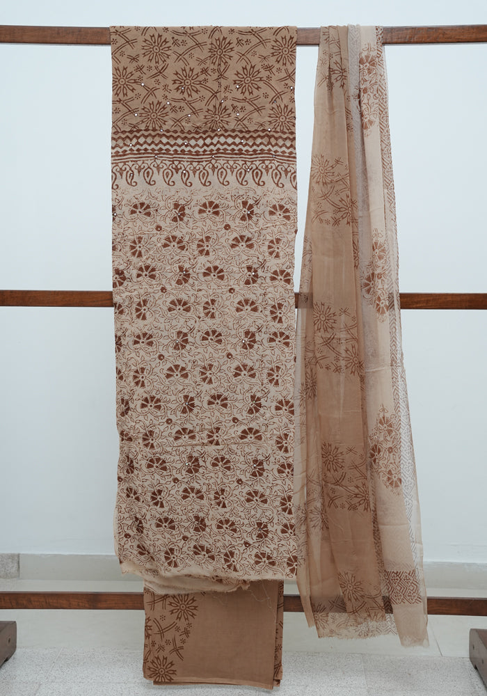 Light Brown and Brown Unstitched Georgette Salwar Set with Mirror Work is OUT OF STOCK currently and available on pre-payment only. Order now for delivery within 2 weeks.