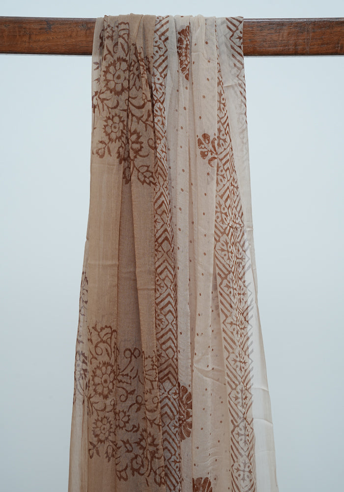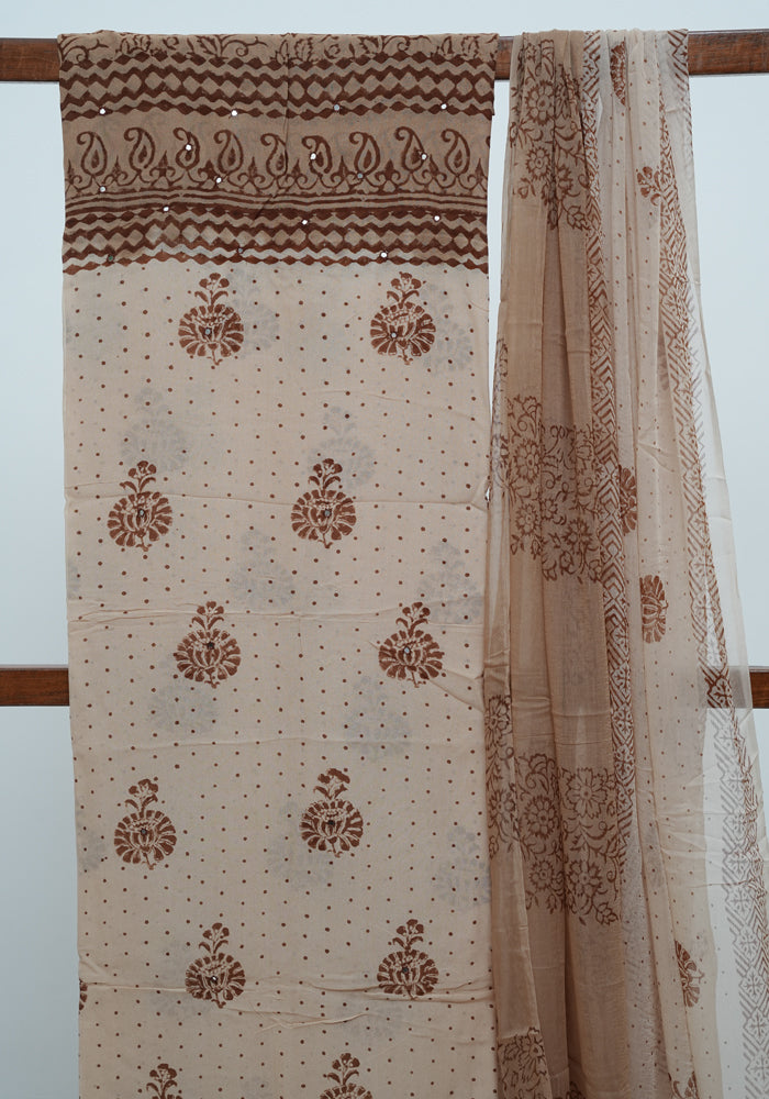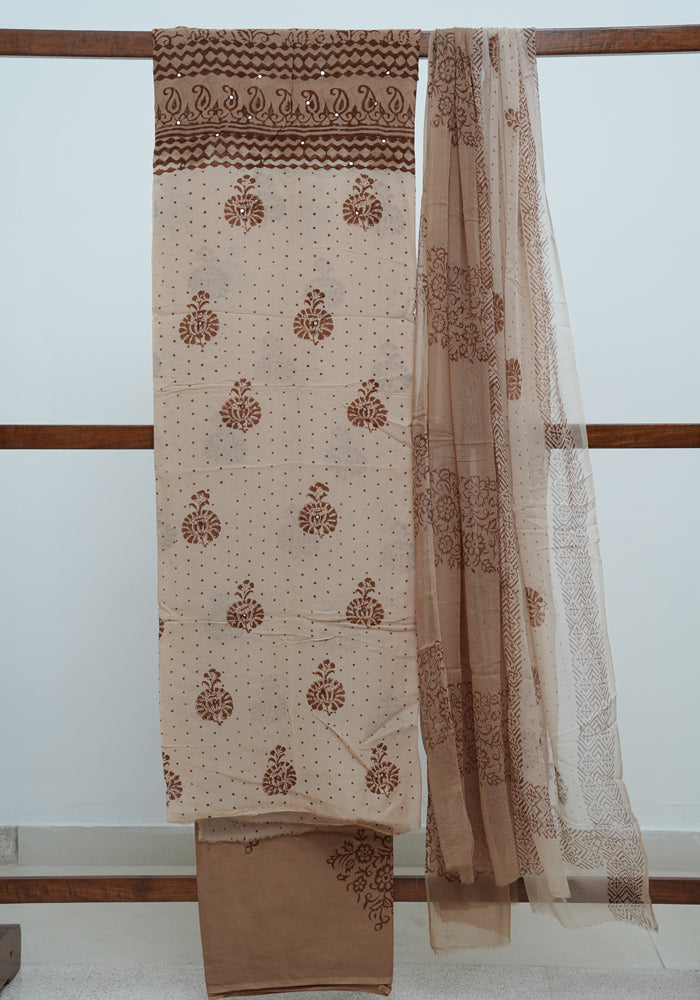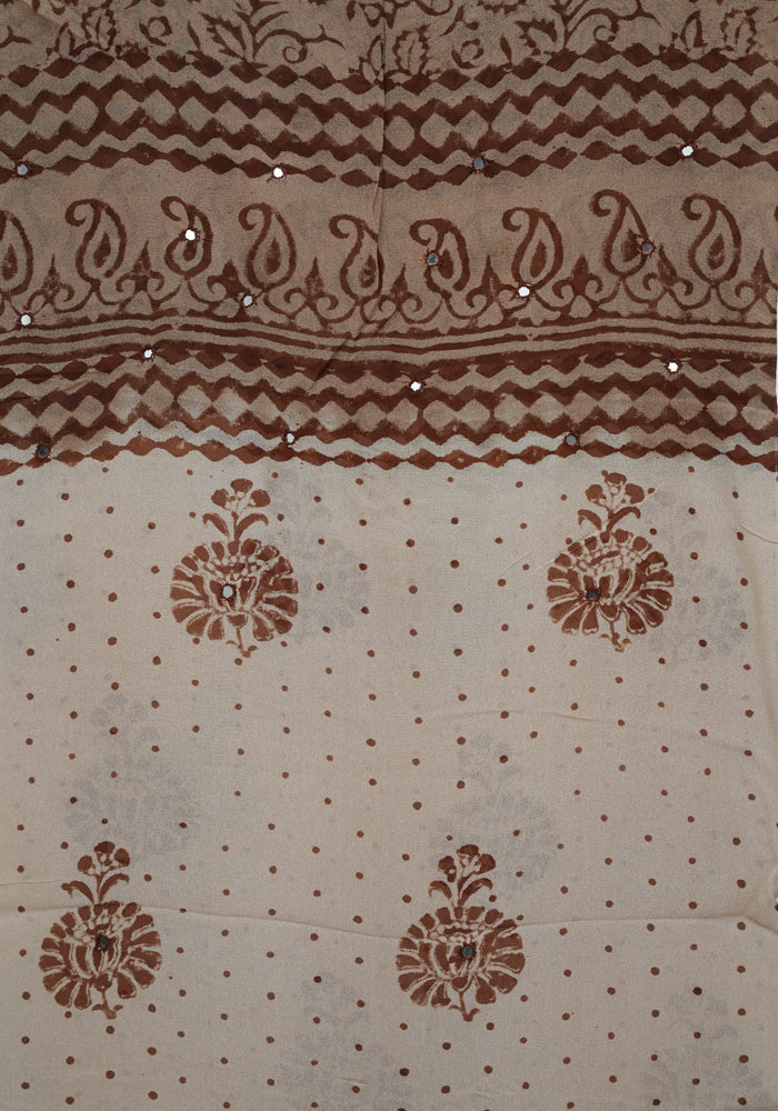 Light Brown and Brown Unstitched Georgette Salwar Set with Mirror Work