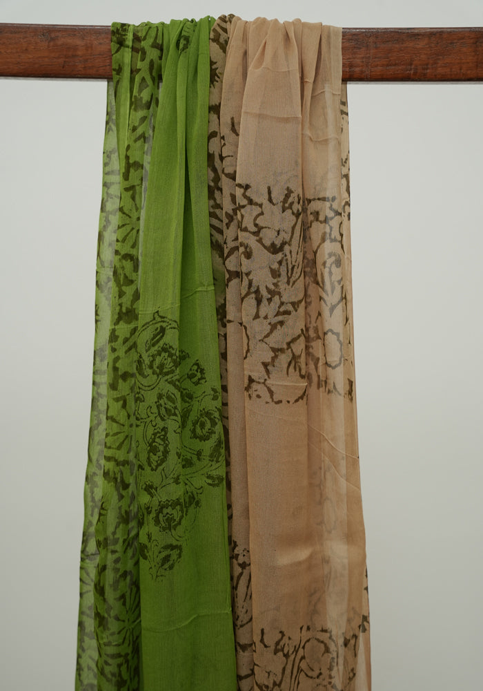 Desically Ethnic brings to you our newest offering, Unstitched Block Printed Chennur Silk Salwar Sets . All our designs are one of kind and they come as a 3 pc set - Top, Bottom and Dupatta.