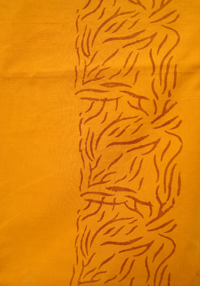 Light Brown and Mango Yellow Unstitched Kalamkari Block Printed Muslin Salwar Set with Mirror Work is OUT OF STOCK currently and available on pre-payment only. Order now for delivery within 2 weeks.