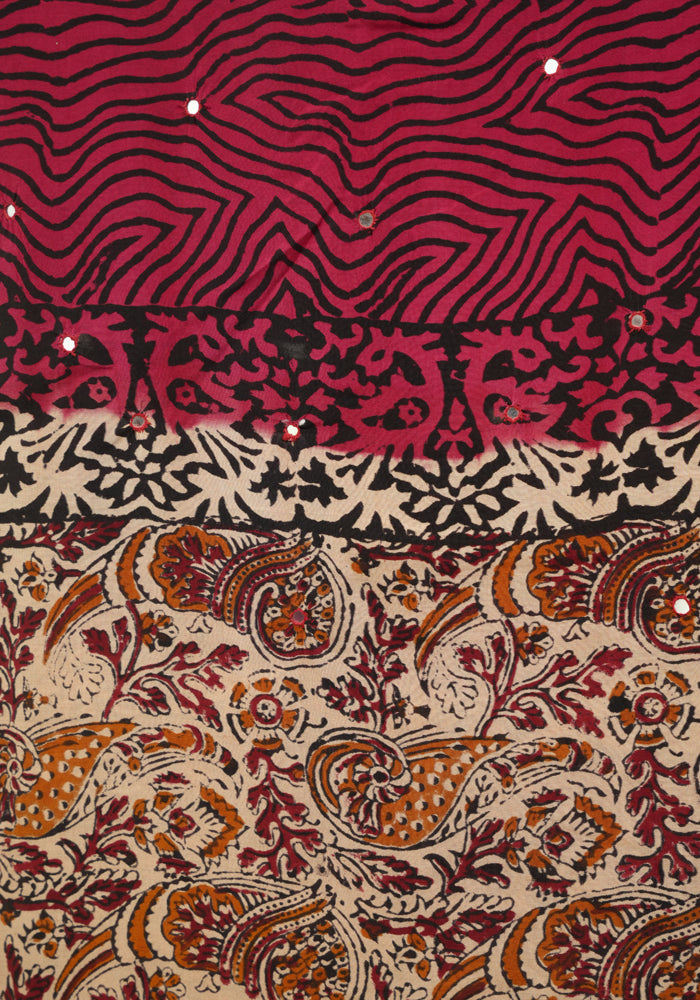 Light Brown and Maroon Unstitched Kalamkari Block Printed Muslin Salwar Set with Mirror Work is OUT OF STOCK currently and available on pre-payment only. Order now for delivery within 2 weeks.