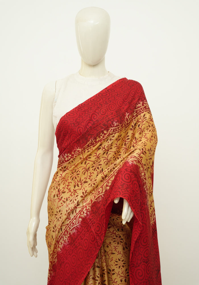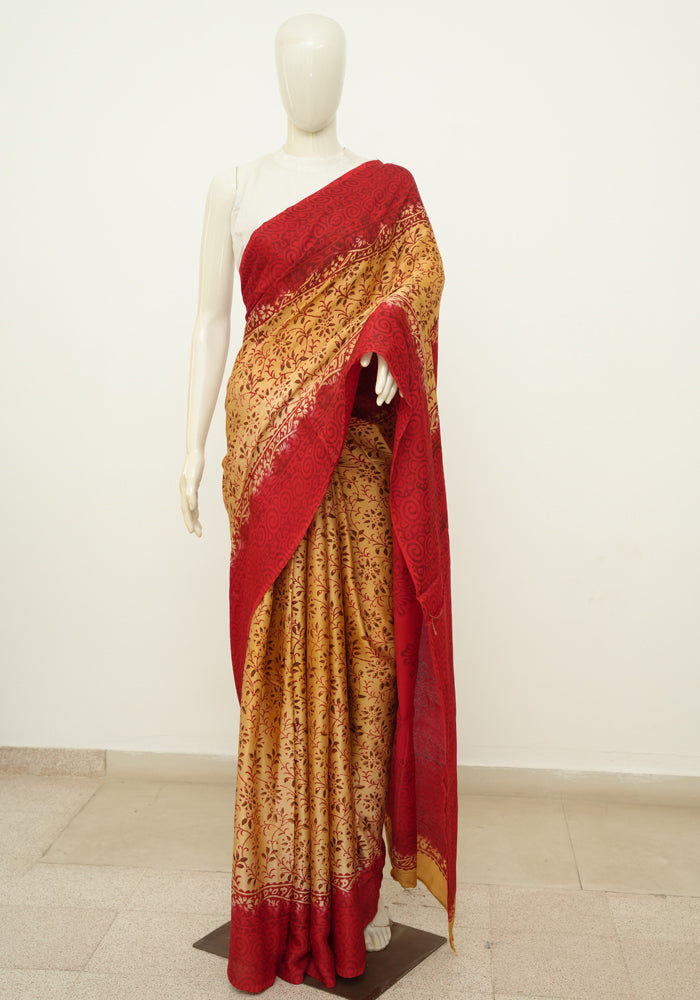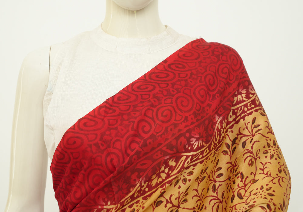 Discover the timeless elegance of hand block printed Modal Silk sarees. Made with the finest modal silk, this saree redefines elegance. The saree is soft , flowy and drapes like a dream.