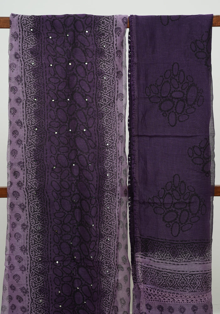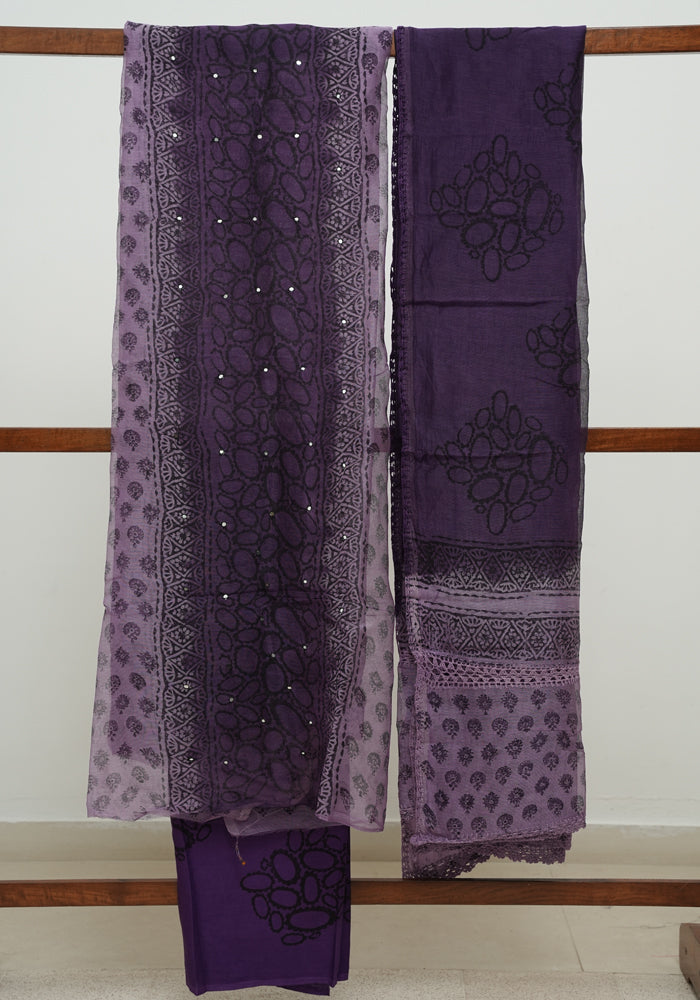 Light Purple and Dark Purple Unstitched Super Net Salwar Set With Mirror Work
