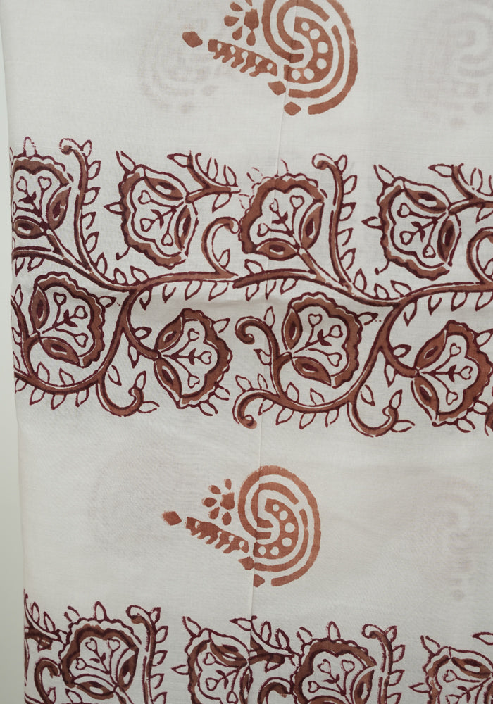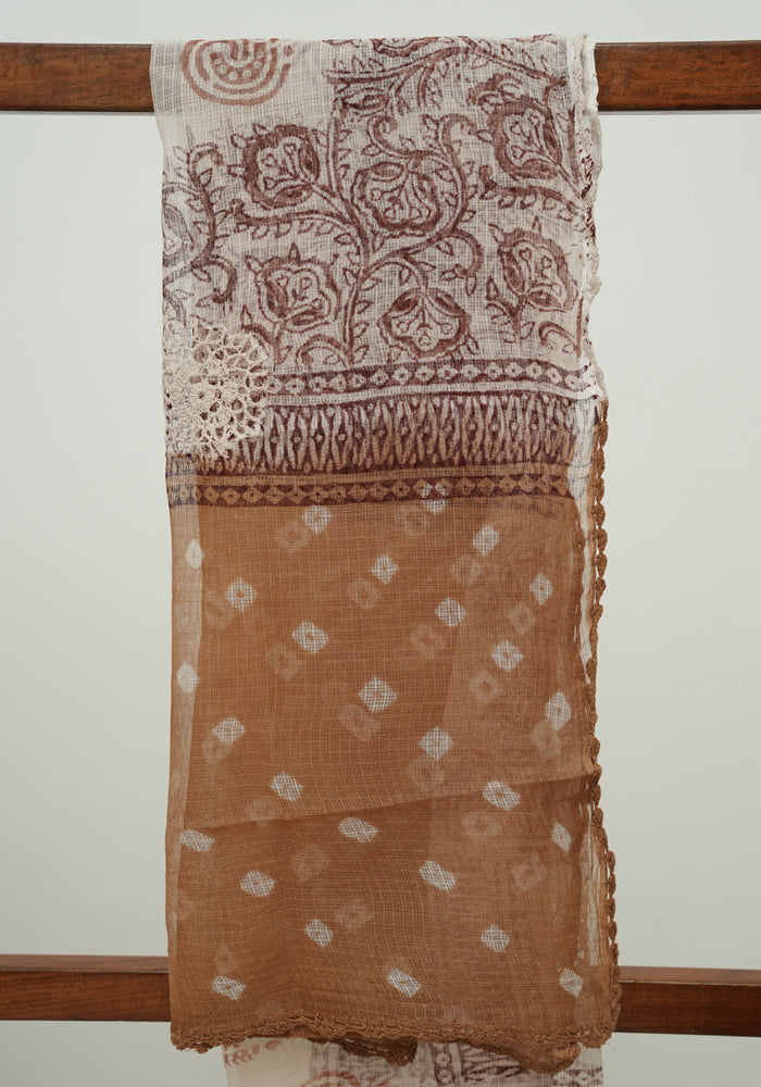 Light Brown and White Unstitched Block Printed Kota Salwar Set With Bandini and Crochet Dupatta is OUT OF STOCK currently and available on pre-payment only. Order now for delivery within 2 weeks.