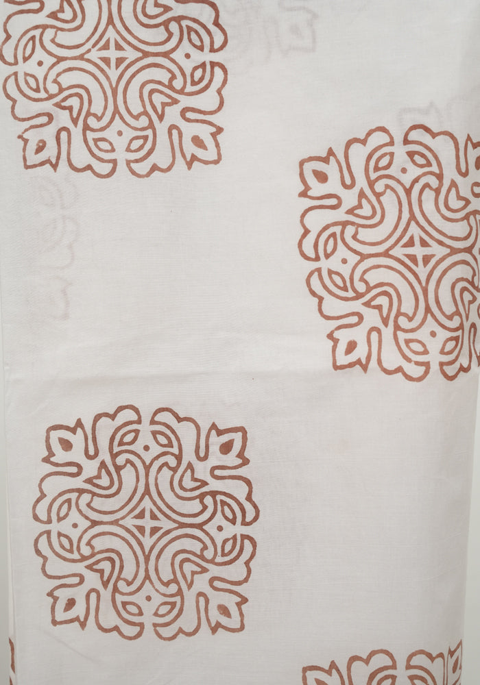 Light Brown and White Unstitched Block Printed Kota Salwar Set With Bandini and Crochet Dupatta is OUT OF STOCK currently and available on pre-payment only. Order now for delivery within 2 weeks.