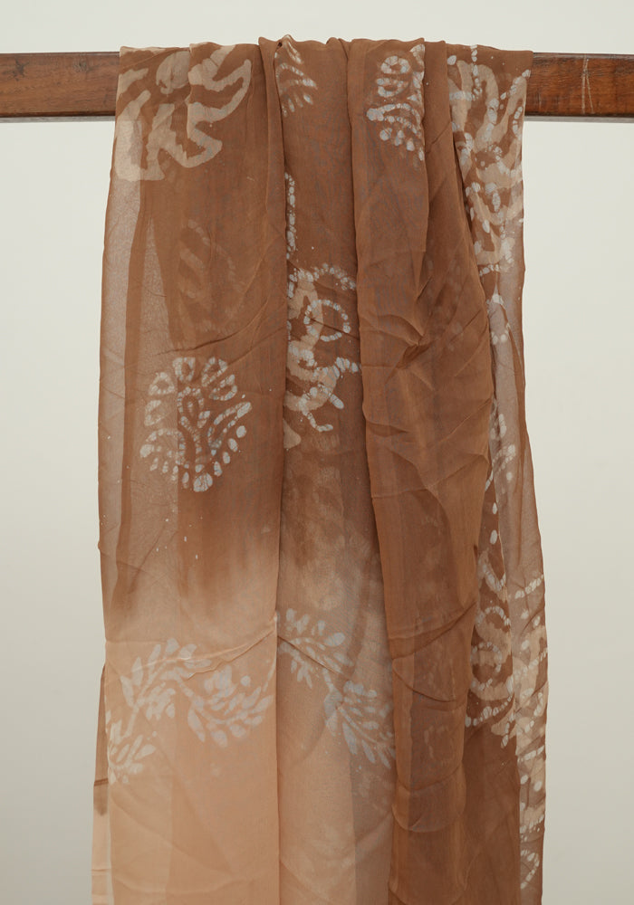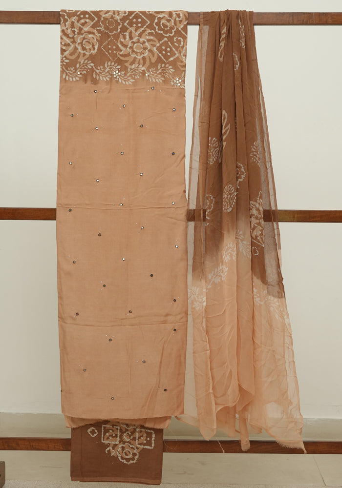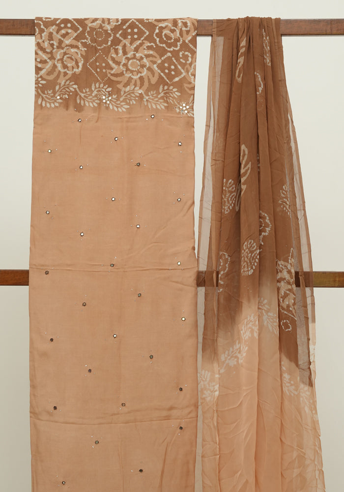 Light Brown Batik Unstitched Muslin Chennur Silk Salwar Set With Mirror and Badla Work