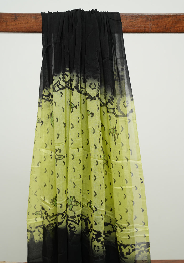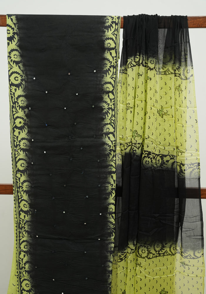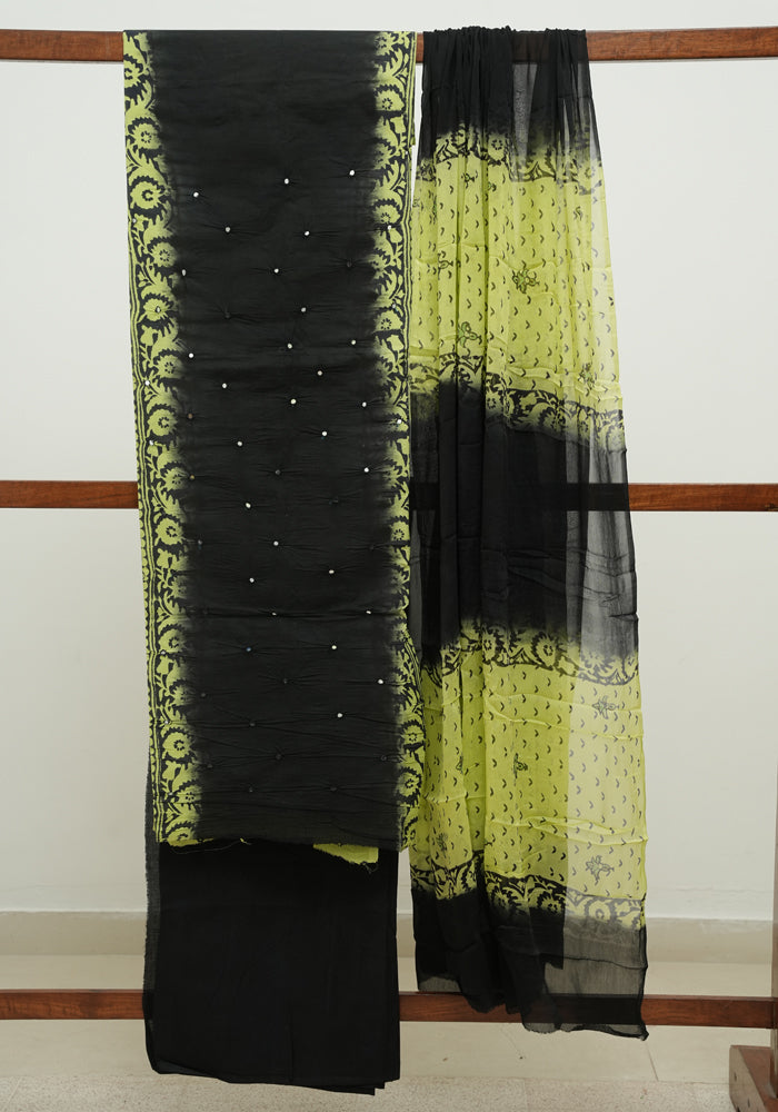Light Green and Black Unstitched Cotton Salwar Set With Mirror Work