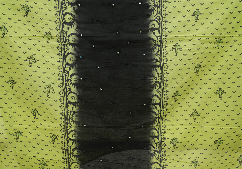 Light Green and Black Unstitched Cotton Salwar Set With Mirror Work is OUT OF STOCK currently and available on pre-payment only. Order now for delivery within 2 weeks.