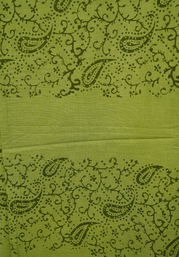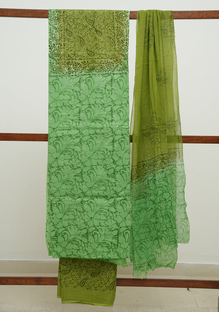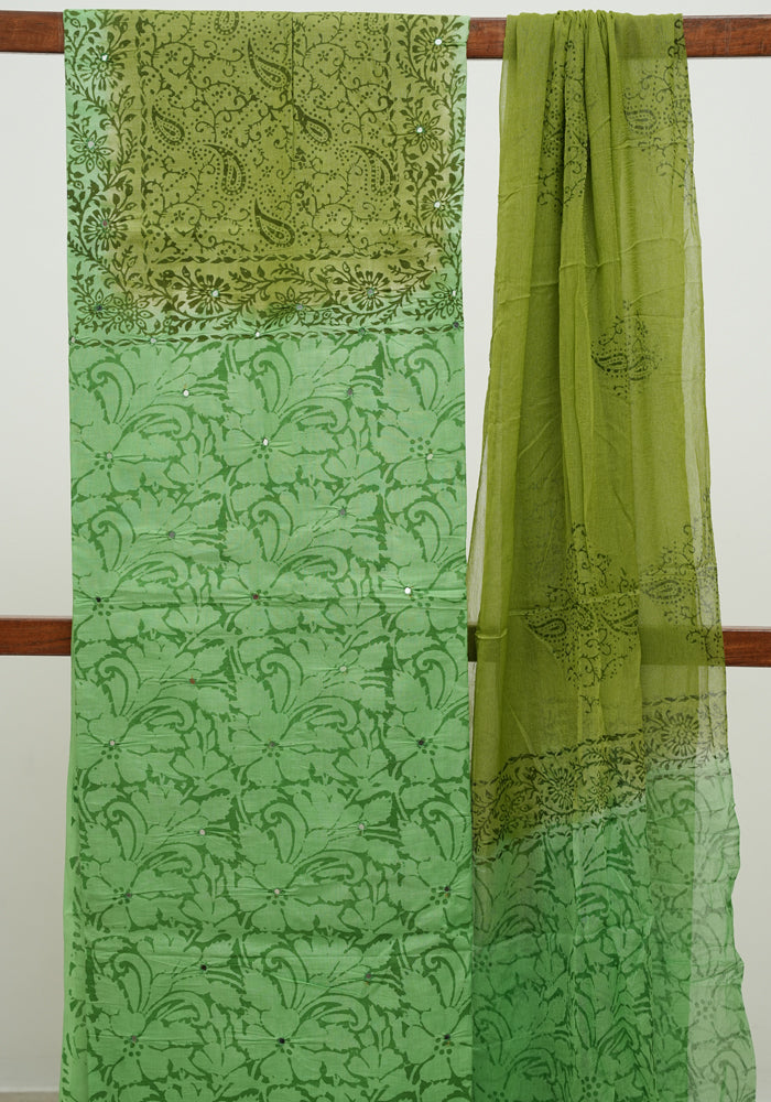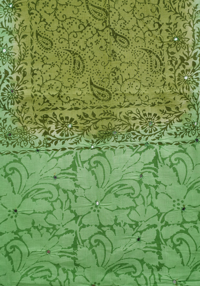 Light Green and Green Unstitched Cotton Salwar Set With Mirror Work