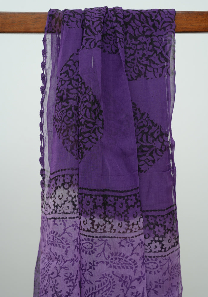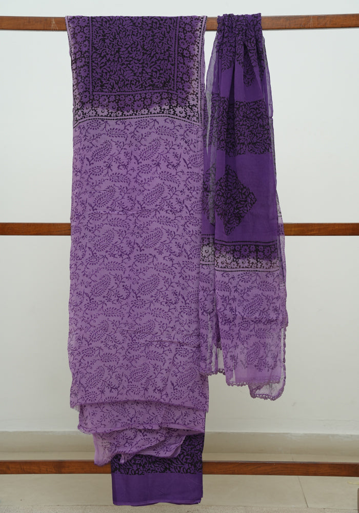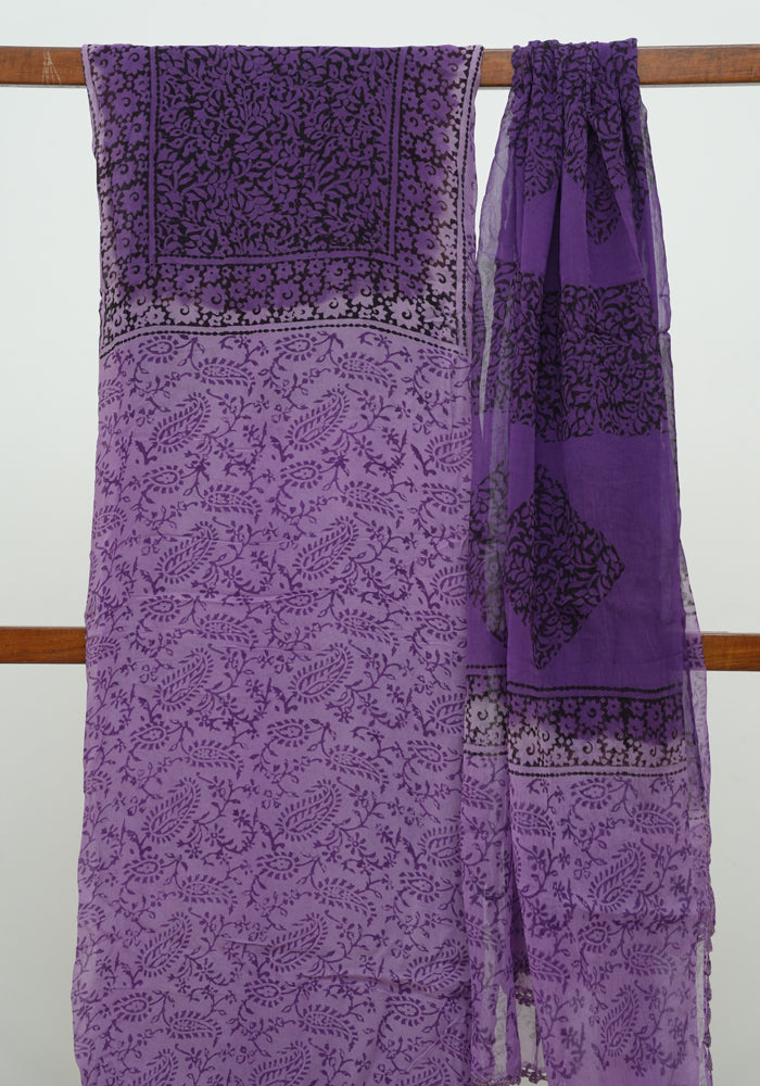Light Purple and Dark Purple Unstitched Blockprinted Georgette Salwar Set