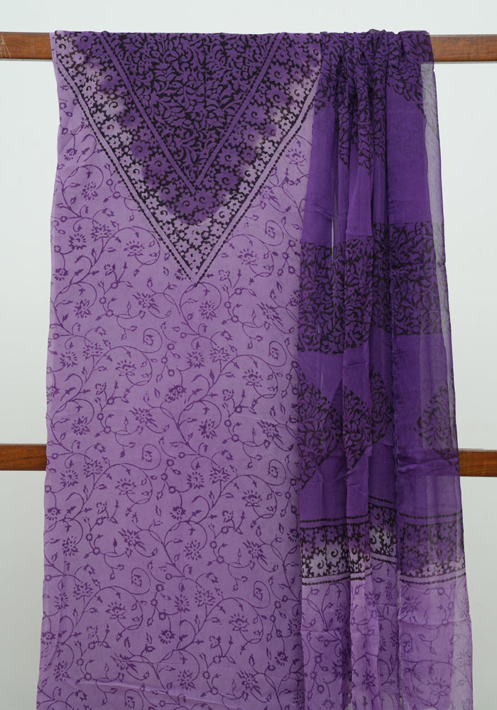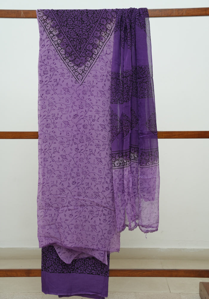 Light Purple and Dark Purple Unstitched Blockprinted Georgette Salwar Set