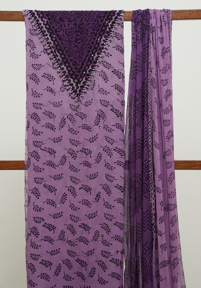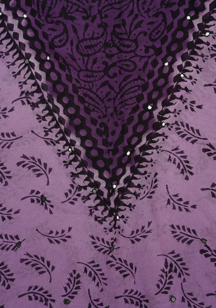 Light Purple and Dark Purple Unstitched Georgette Salwar Set with Mirror Work