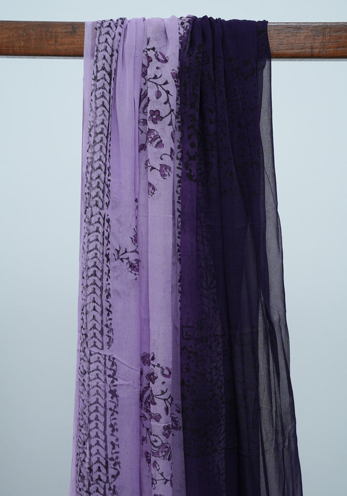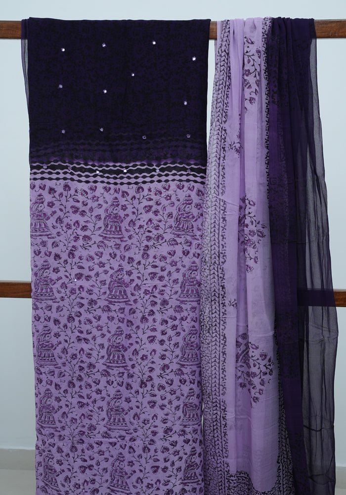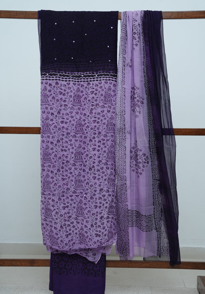 Light Purple and Dark Purple Unstitched Georgette Salwar Set with Mirror Work