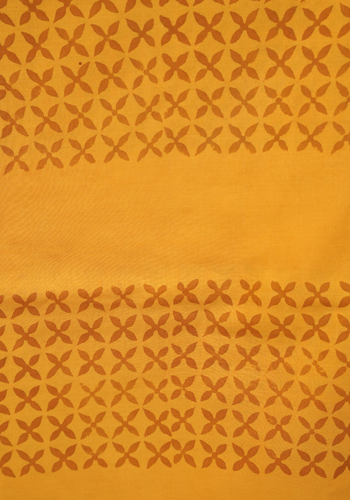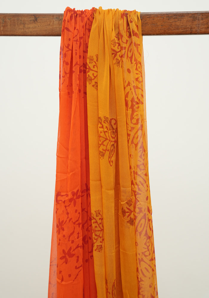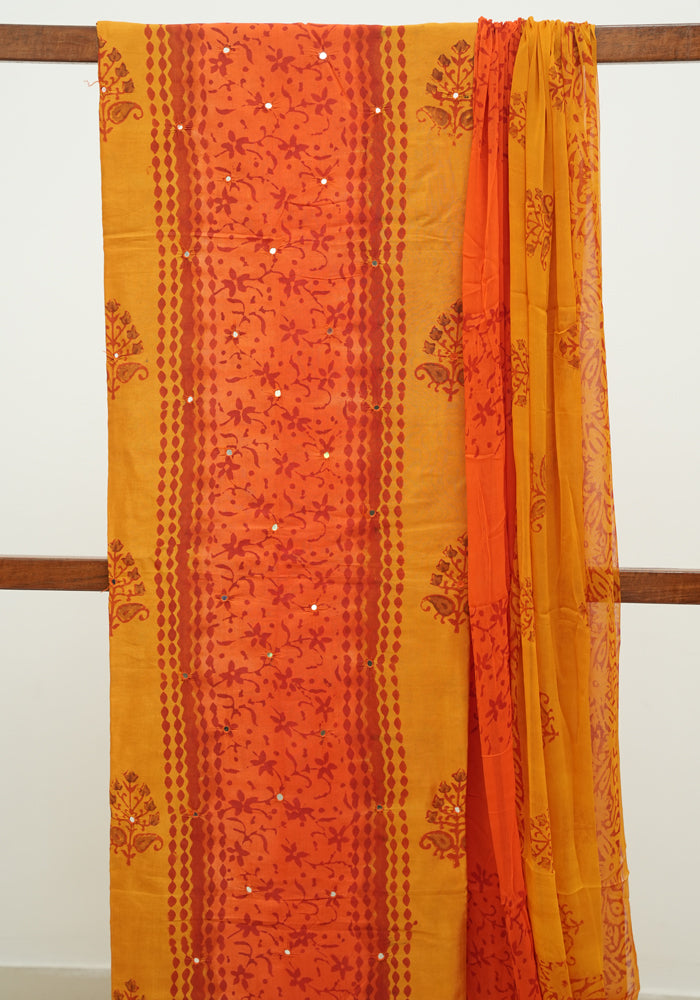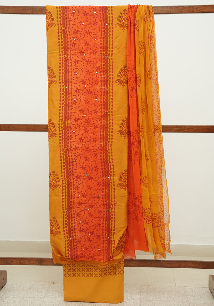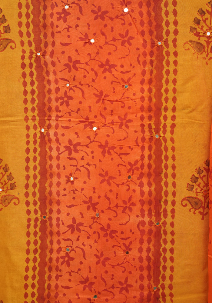 Mango Yellow and Orange Unstitched Chennur Silk Salwar Set With Mirror Work