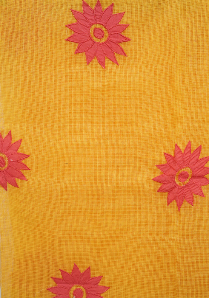 Mango Yellow and Red Unstitched Applique Work Kota Salwar Set With Silk Dupatta is OUT OF STOCK currently and available on pre-payment only. Order now for delivery within 2 weeks.