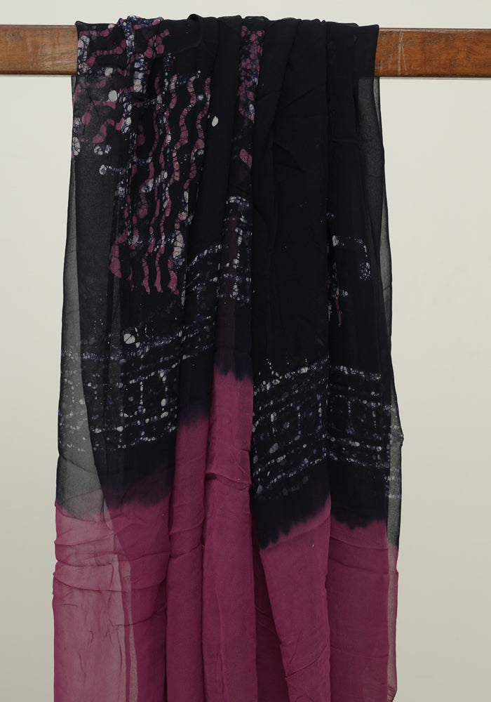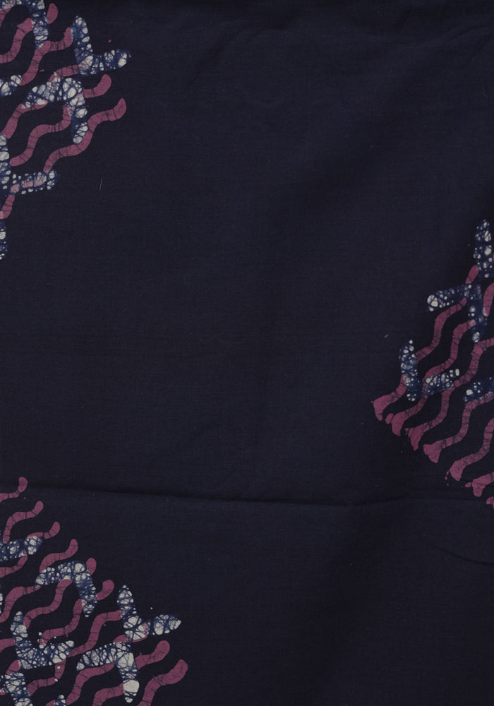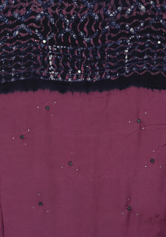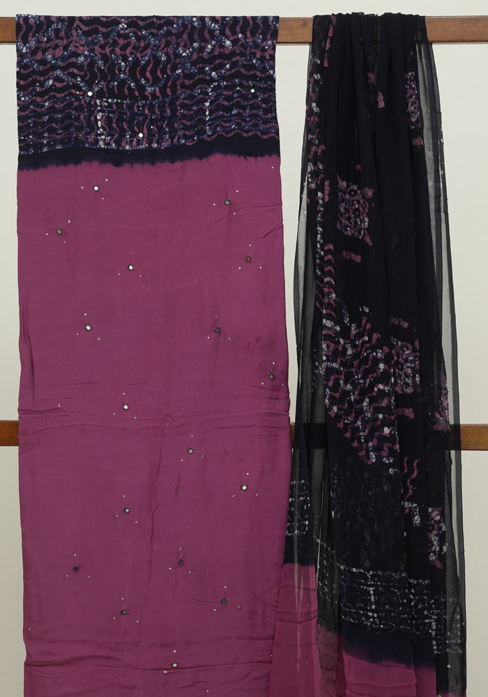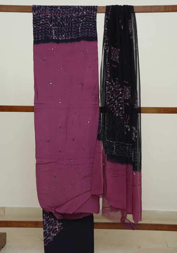 Mauve Pink and Navy Blue Batik Unstitched Muslin Chennur Silk Salwar Set With Mirror and Badla Work
