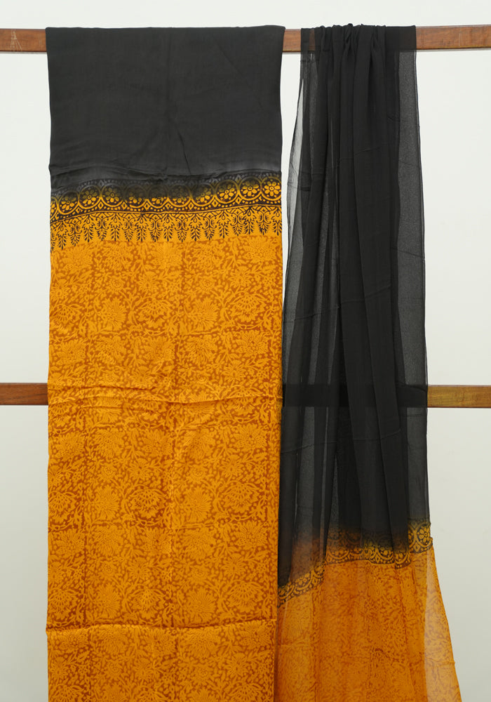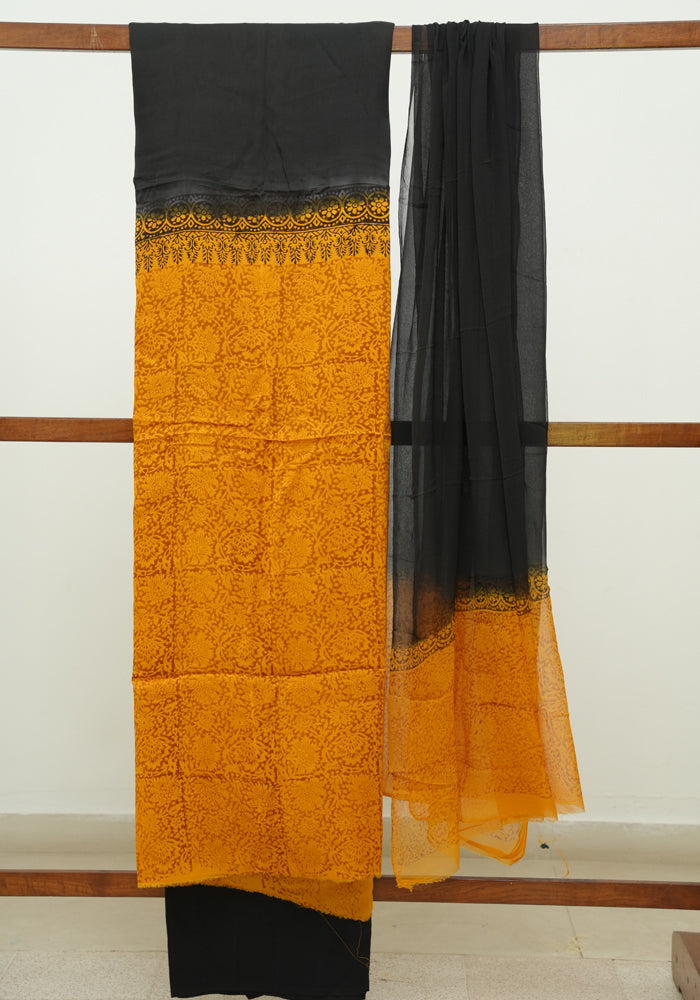 Mustard Yellow and Black Modal Silk Block Printed Unstitched Salwar Set