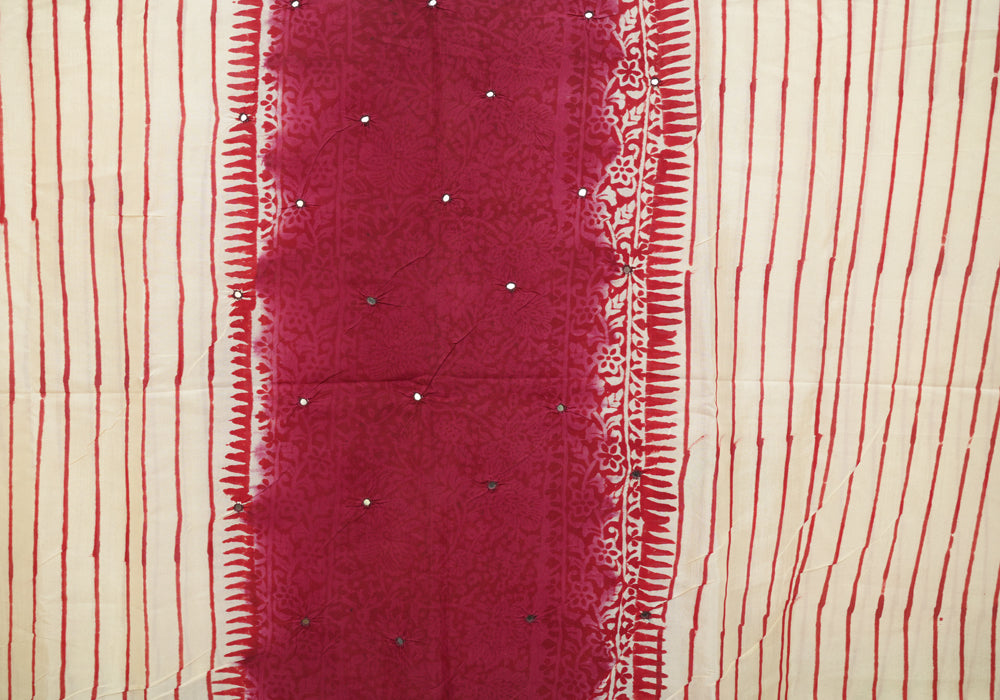 Off White and Maroon Unstitched Chennur Silk Salwar Set With Mirror Work is OUT OF STOCK currently and available on pre-payment only. Order now for delivery within 2 weeks.