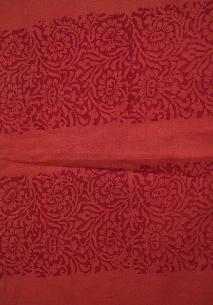 Off White and Rust Red Modal Silk Block Printed Unstitched Salwar Set is OUT OF STOCK currently and available on pre-payment only. Order now for delivery within 2 weeks.