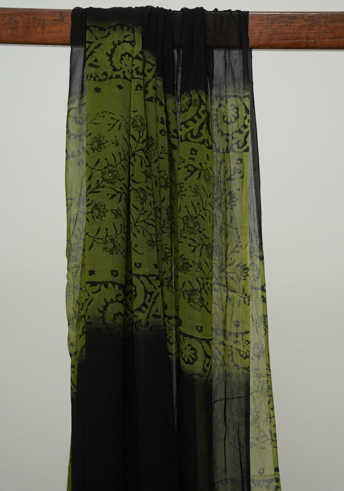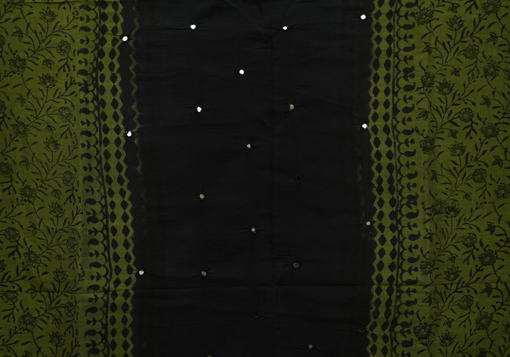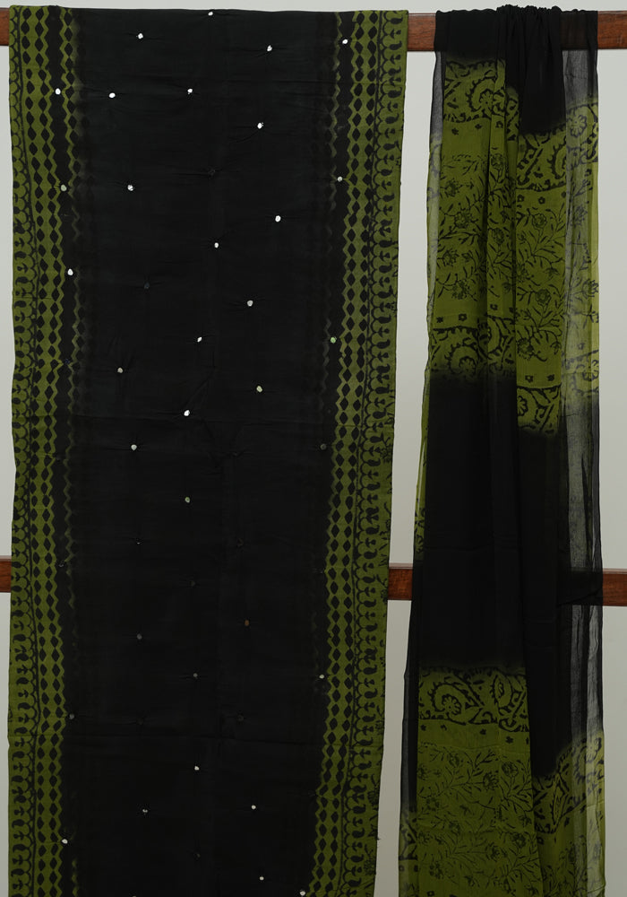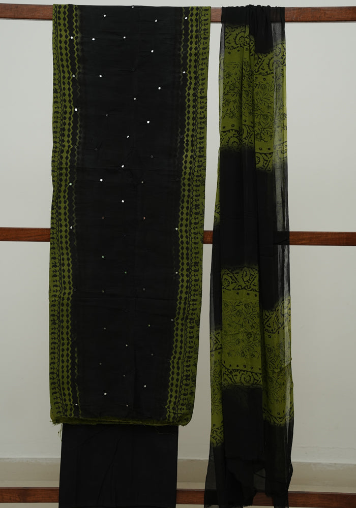 Olive Green and Black Unstitched Chennur Silk Salwar Set With Mirror Work
