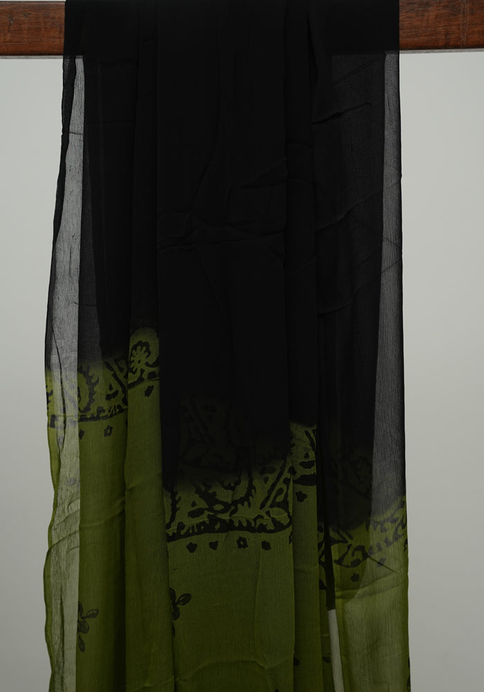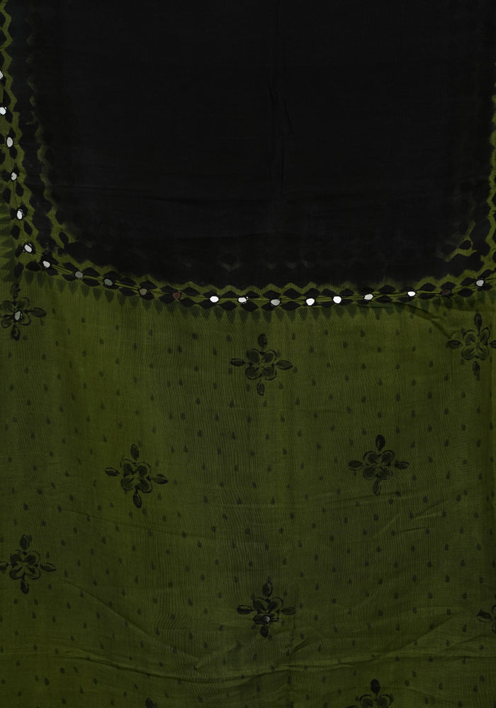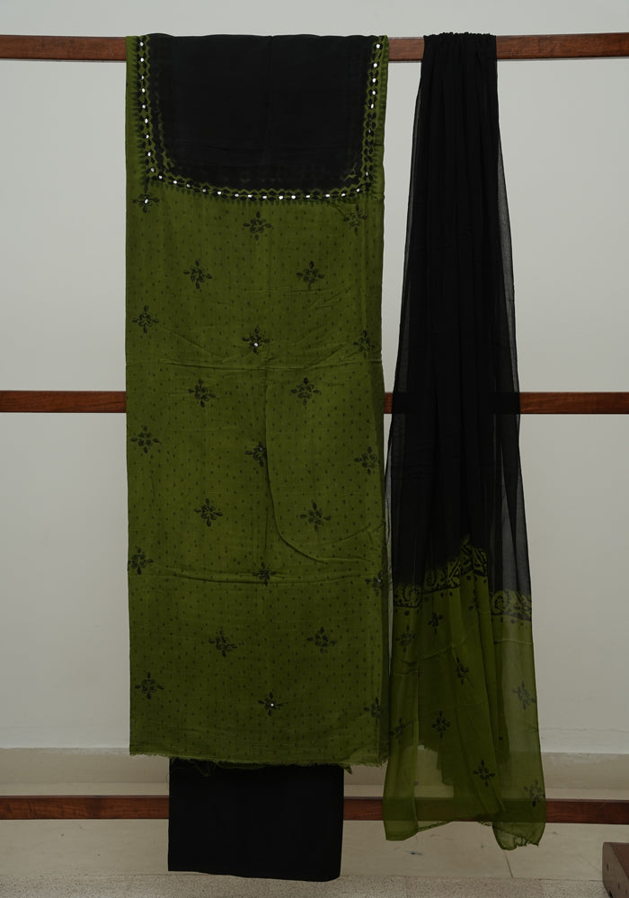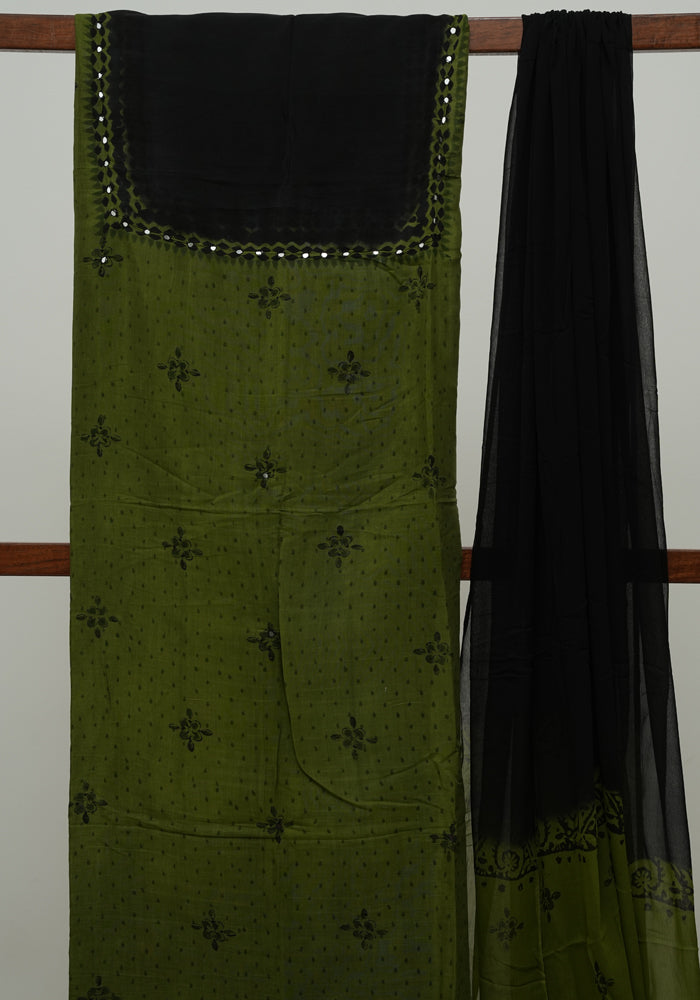 Olive Green and Black Unstitched Chennur Silk Salwar Set With Mirror Work
