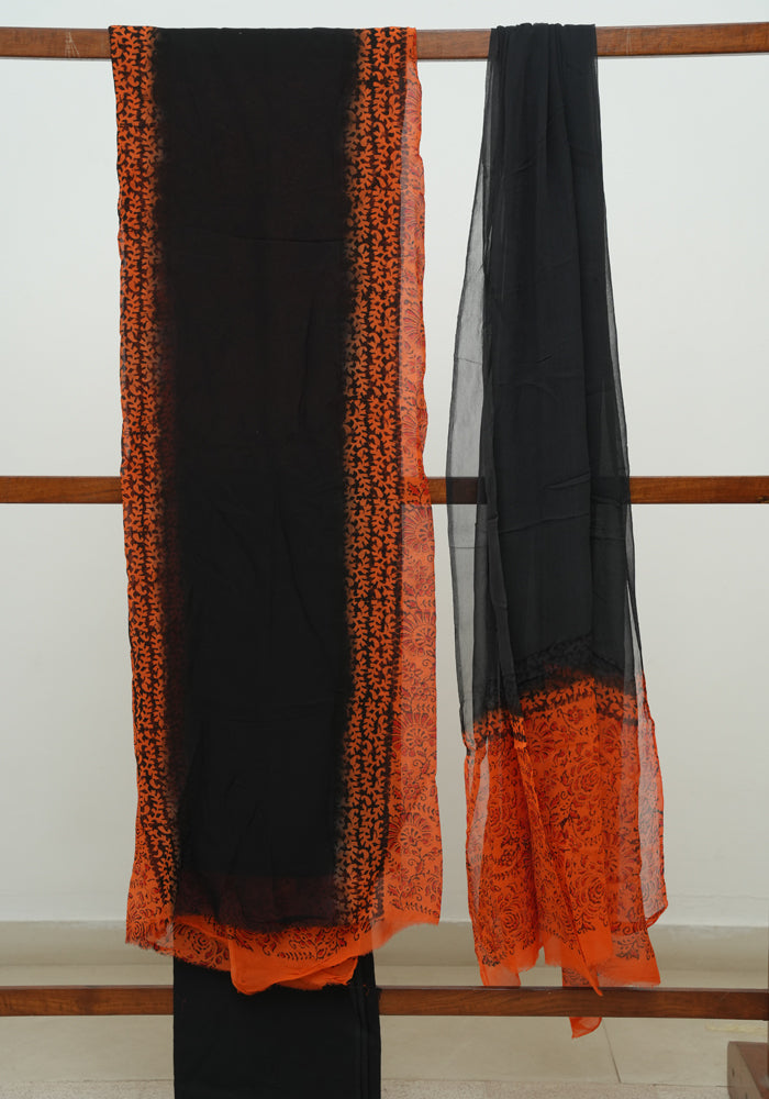 Orange and Black Unstitched Blockprinted Georgette Salwar Set