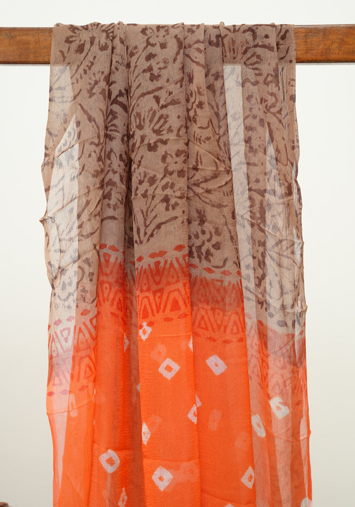 Orange and Brown Unstitched Cotton Salwar Set With Bandini