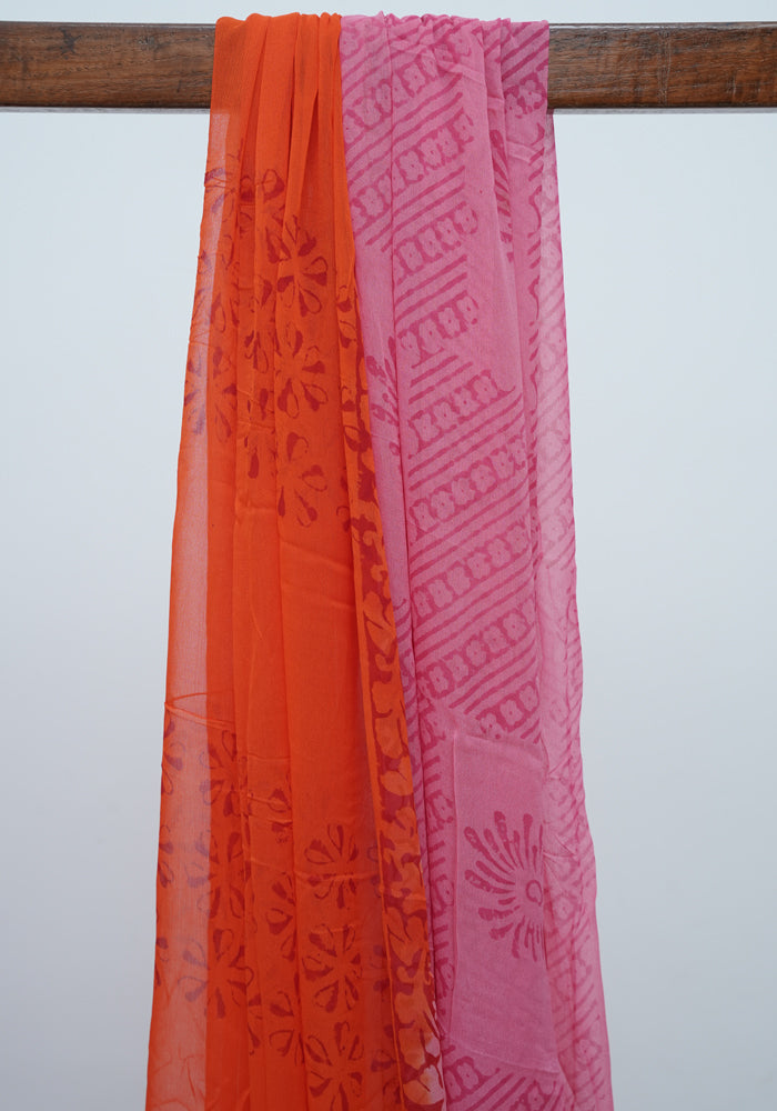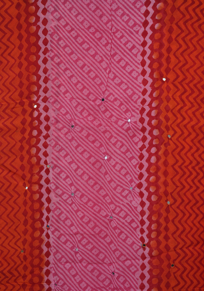 Orange and Pink Unstitched Georgette Salwar Set with Mirror Work is OUT OF STOCK currently and available on pre-payment only. Order now for delivery within 2 weeks.