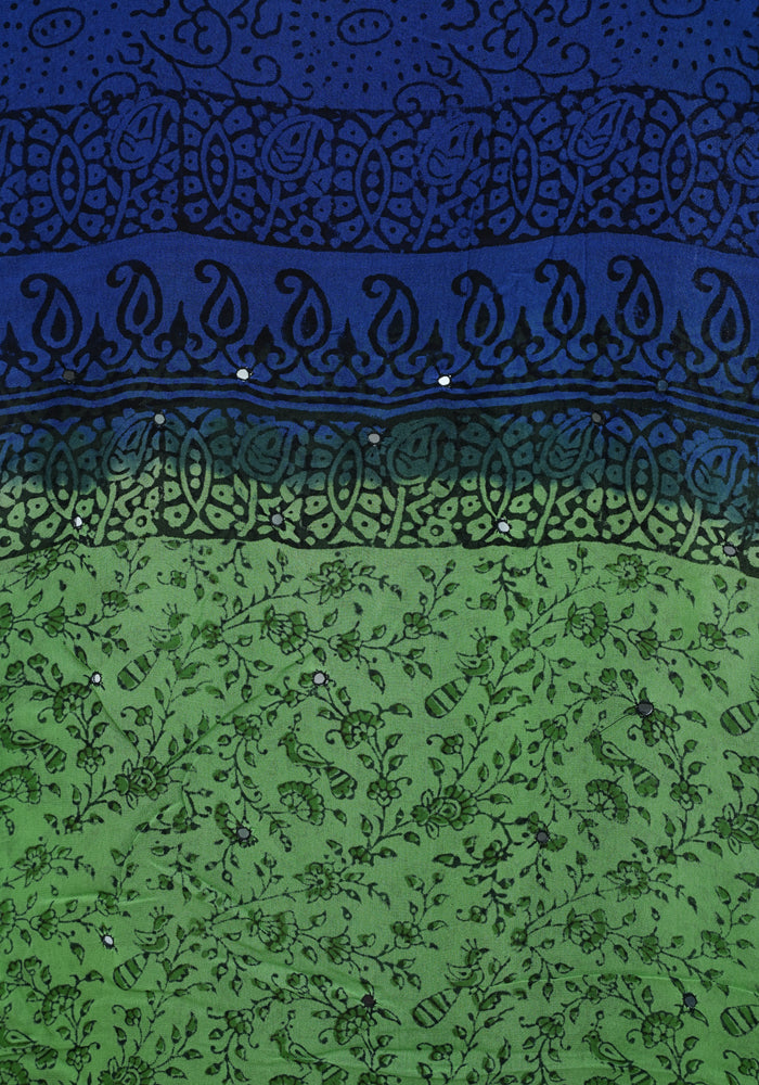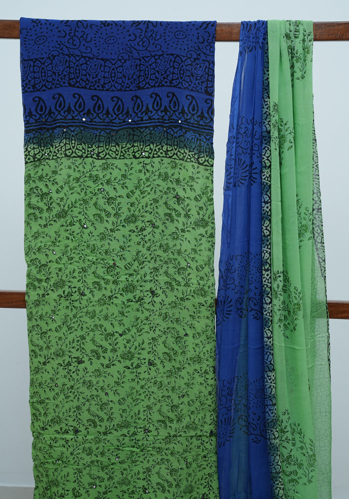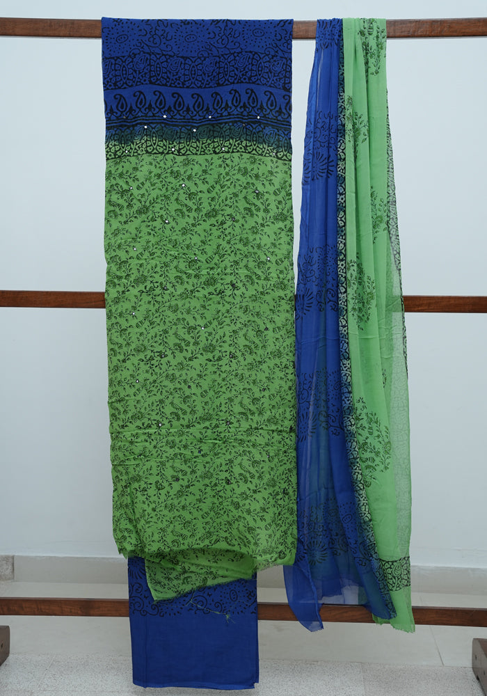 Parrot Green and Blue Unstitched Georgette Salwar Set with Mirror Work