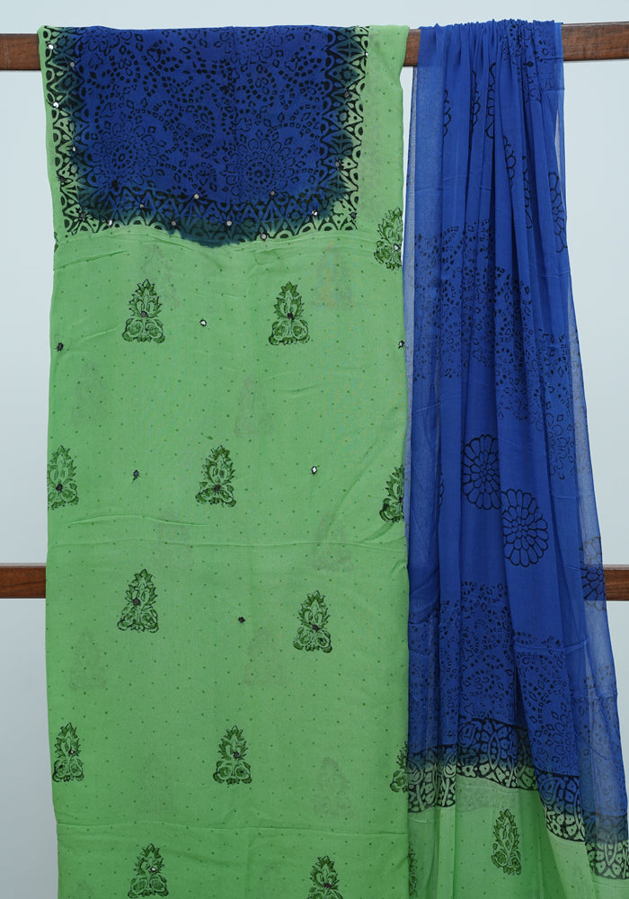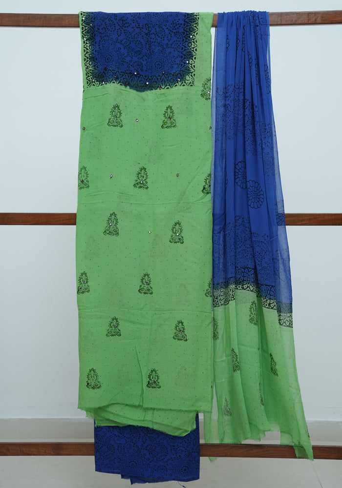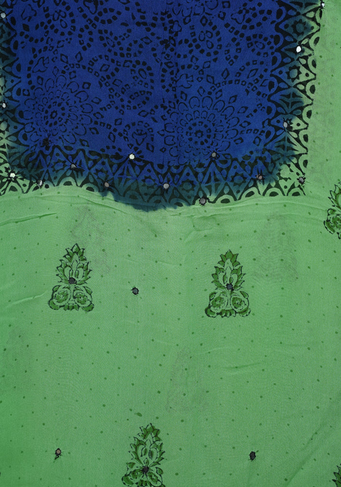 Parrot Green and Blue Unstitched Georgette Salwar Set with Mirror Work