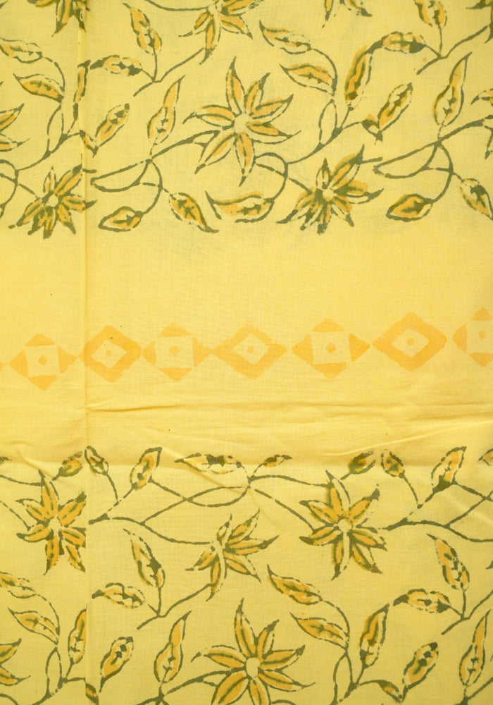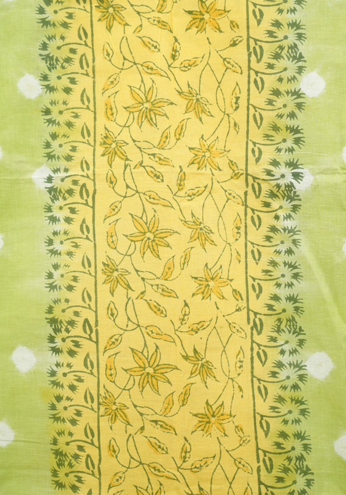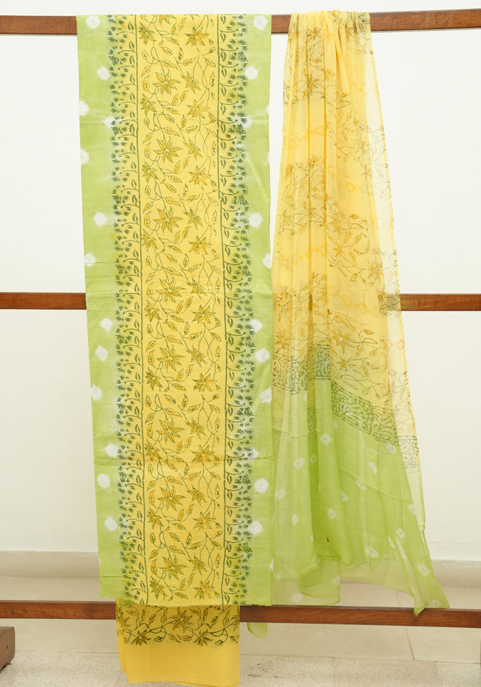 Parrot Green and Lemon Yellow Unstitched Cotton Salwar Set With Bandini