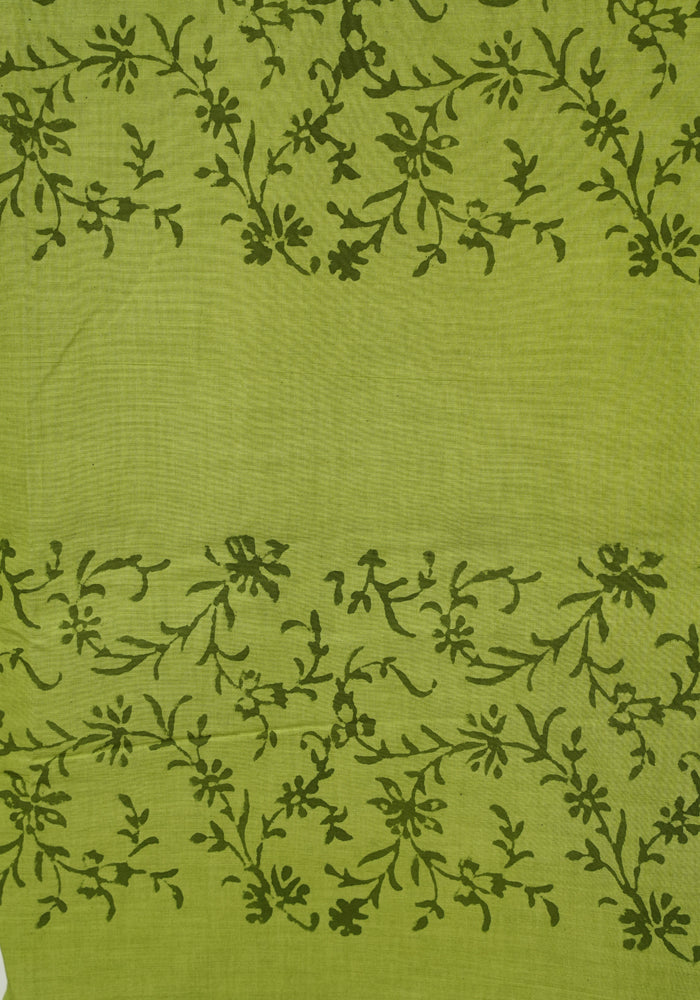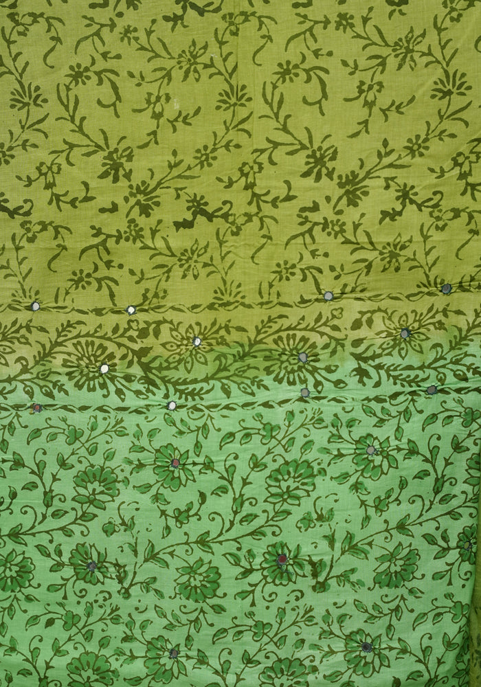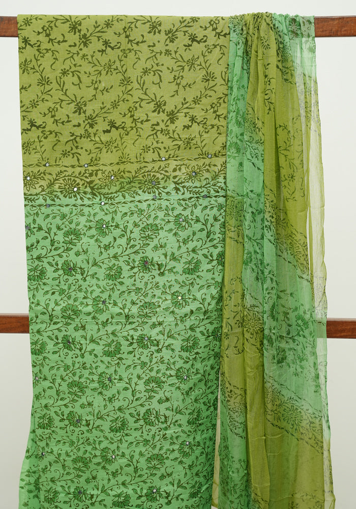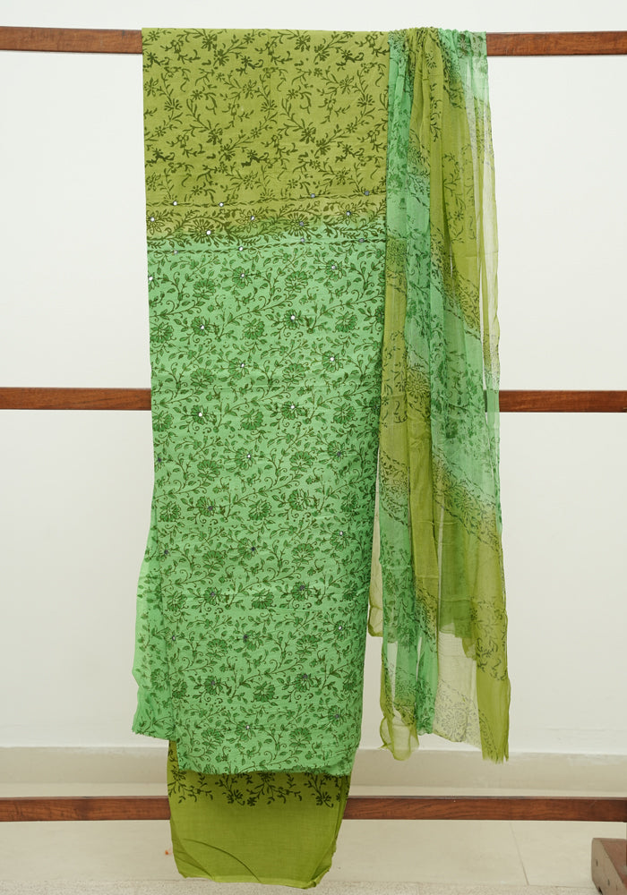 Parrot Green and Olive Green Unstitched Cotton Salwar Set With Mirror Work