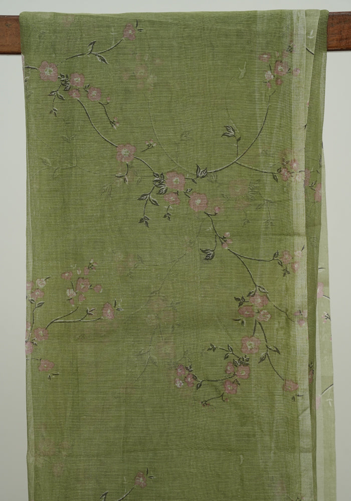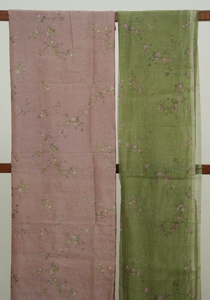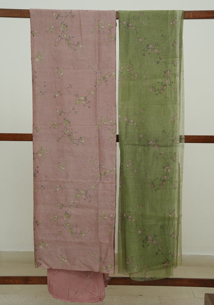 Pastel Pink and Green Unstitched Chanderi Salwar Set with Supernet Dupatta