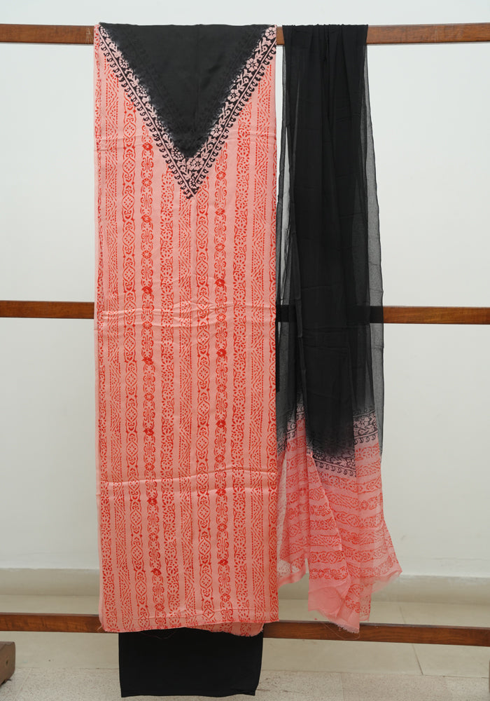 Desically Ethnic brings to you our newest offering, Unstitched Block Printed Modal silk Salwar Sets.All our designs are one of kind and they come as a 3 pc set - Top, Bottom and Dupatta.