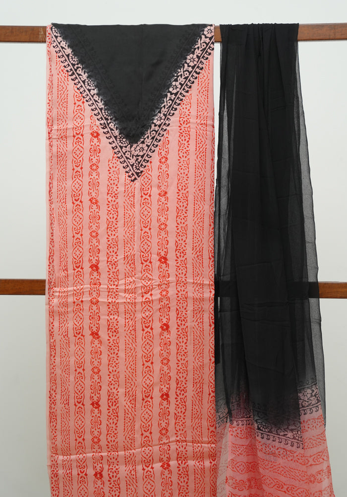 The Modal Silk Fabric looks luxurious and dressy. The block printing has been done by Masters of the art and adds a fashionable and cultural touch to the salwar set.