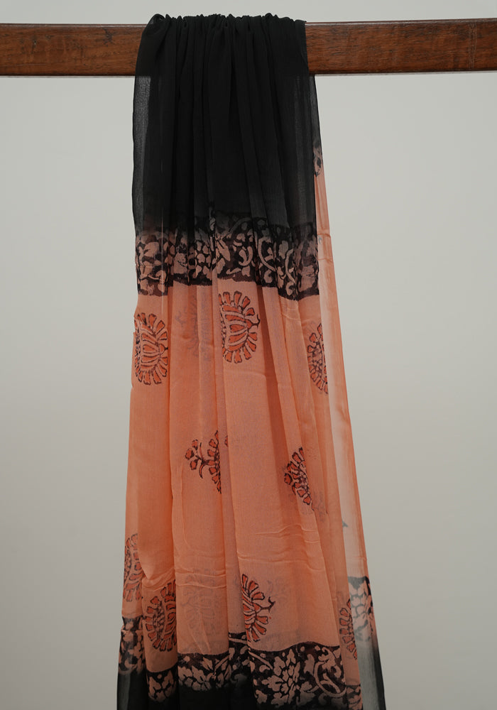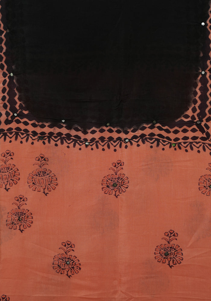 Peach and Black Unstitched Chennur Silk Salwar Set With Mirror Work