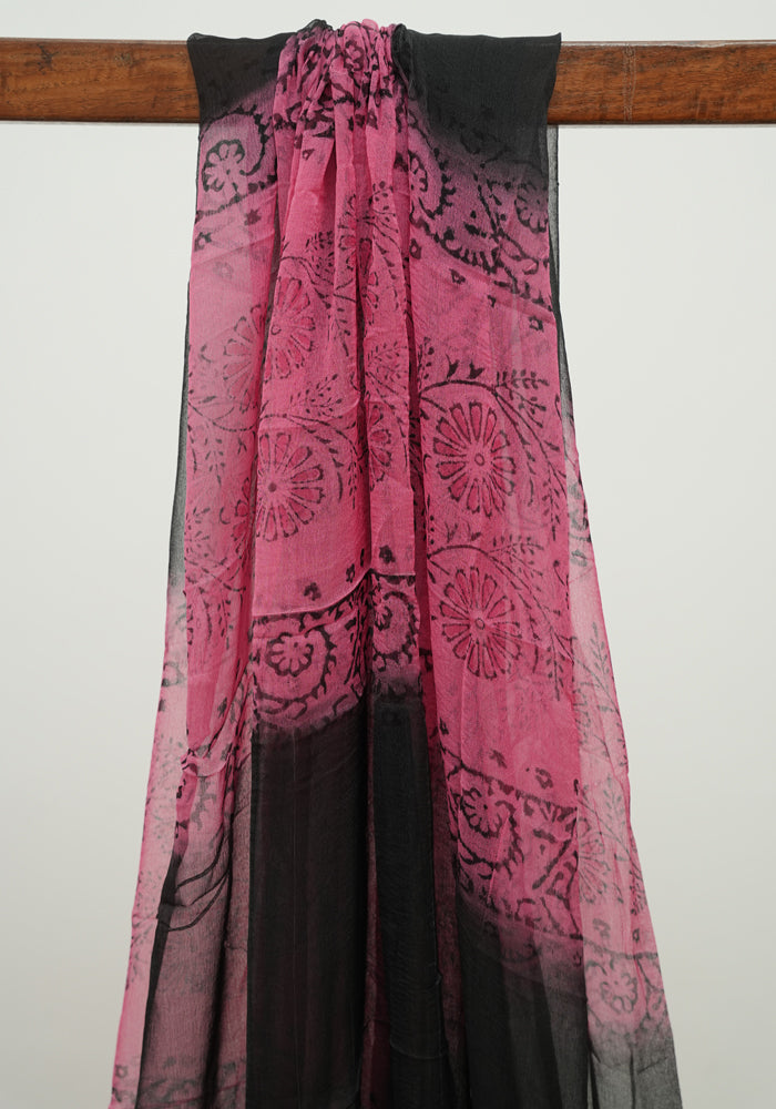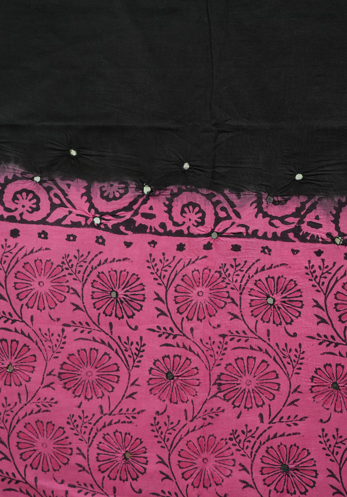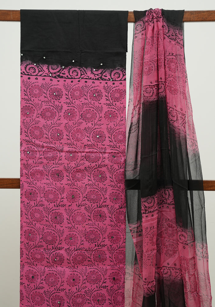 Pink and Black Unstitched Cotton Salwar Set With Mirror Work