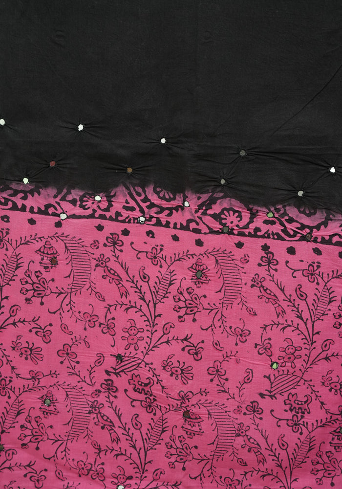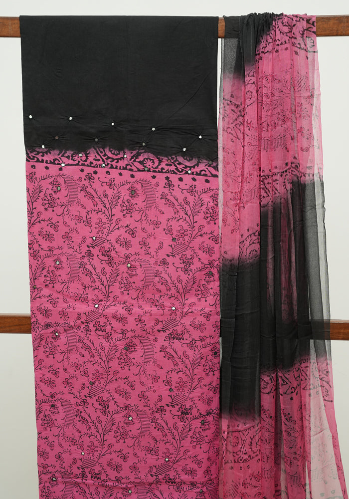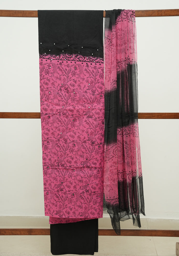 Pink and Black Unstitched Cotton Salwar Set With Mirror Work