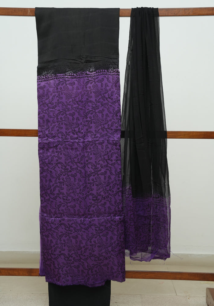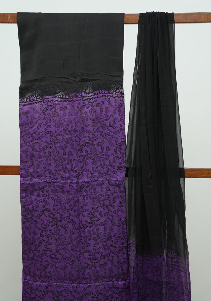 Purple and Black Modal Silk Block Printed Unstitched Salwar Set