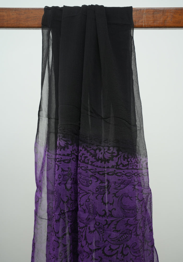 Purple and Black Modal Silk Block Printed Unstitched Salwar Set is OUT OF STOCK currently and available on pre-payment only. Order now for delivery within 2 weeks.