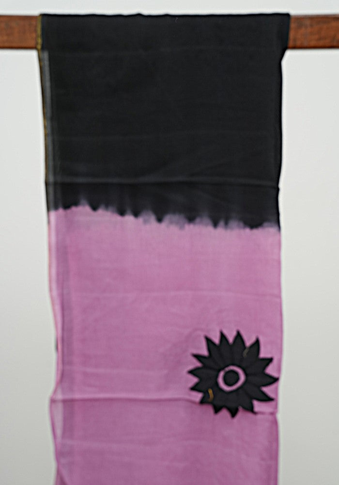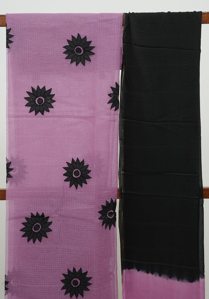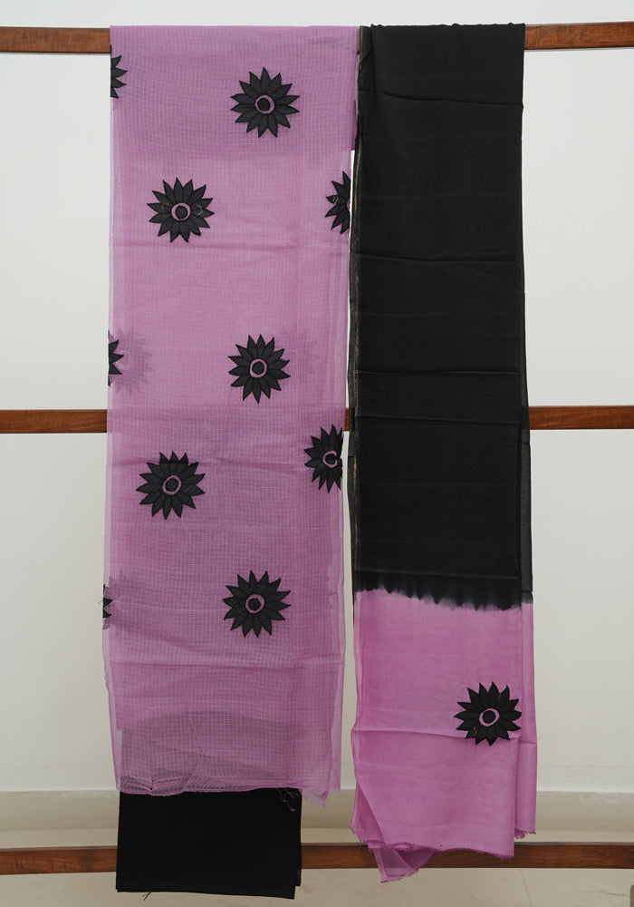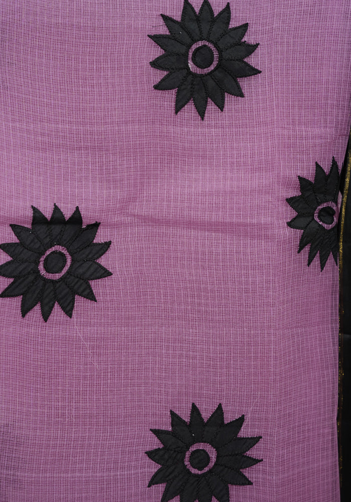 Purple and Black Unstitched Applique Work Kota Salwar Set With Silk Dupatta
