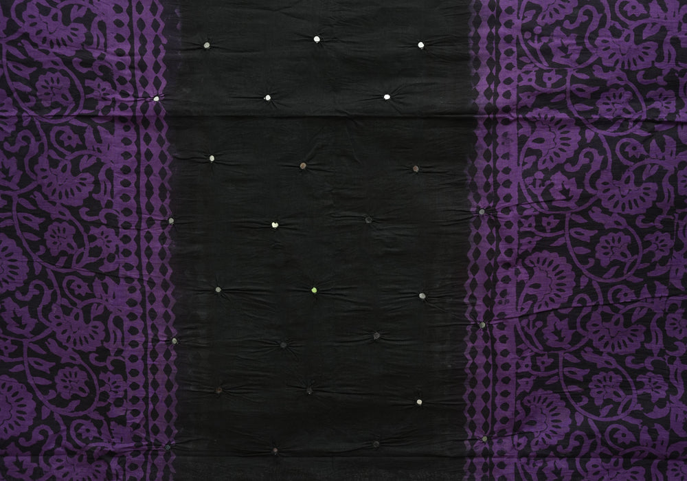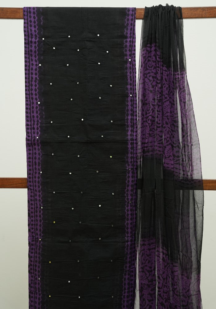 Purple and Black Unstitched Cotton Salwar Set With Mirror Work