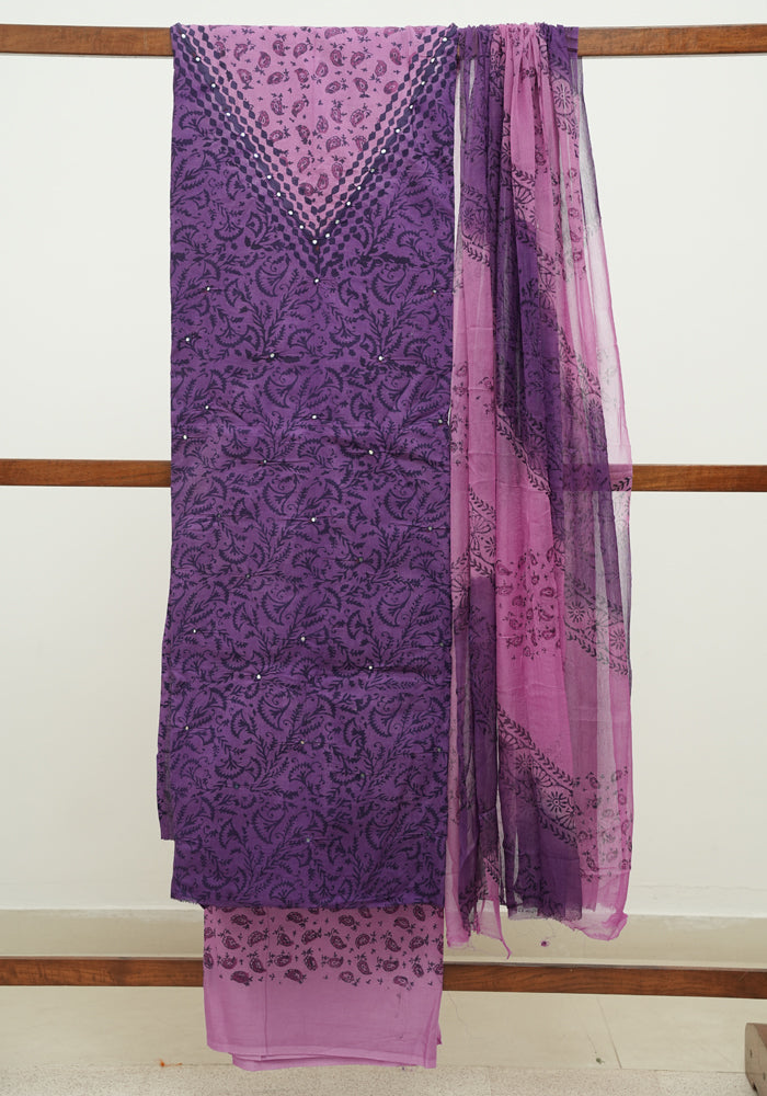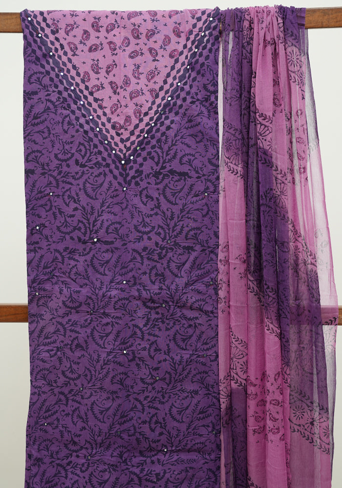 Desically Ethnic brings to you our newest offering, Unstitched Block Printed Cotton Salwar Sets with Kota Dupatta. All our desgins are one of kind and they come as a 3 pc set - Top, Bottom and Dupatta.
